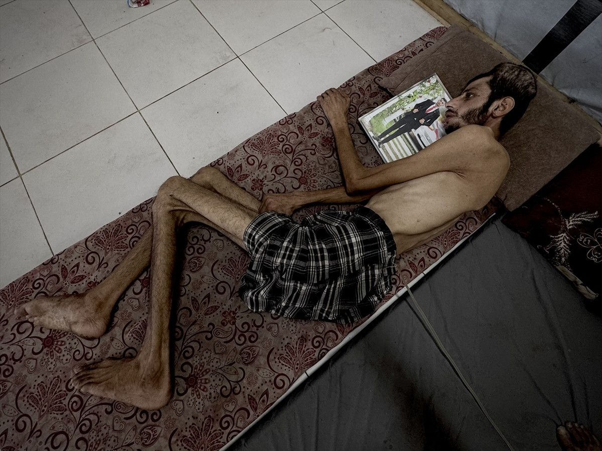 Doğuştan gelen bir hastalığı bulunan çocuğuna bakmakla yükümlü olan Tavil, sağlık hizmetlerinin çökme noktasına geldiği Gazze’de tedavi ve ilaç yetersizliği nedeniyle ciddi derecede yetersiz beslenme sorunu yaşıyor.