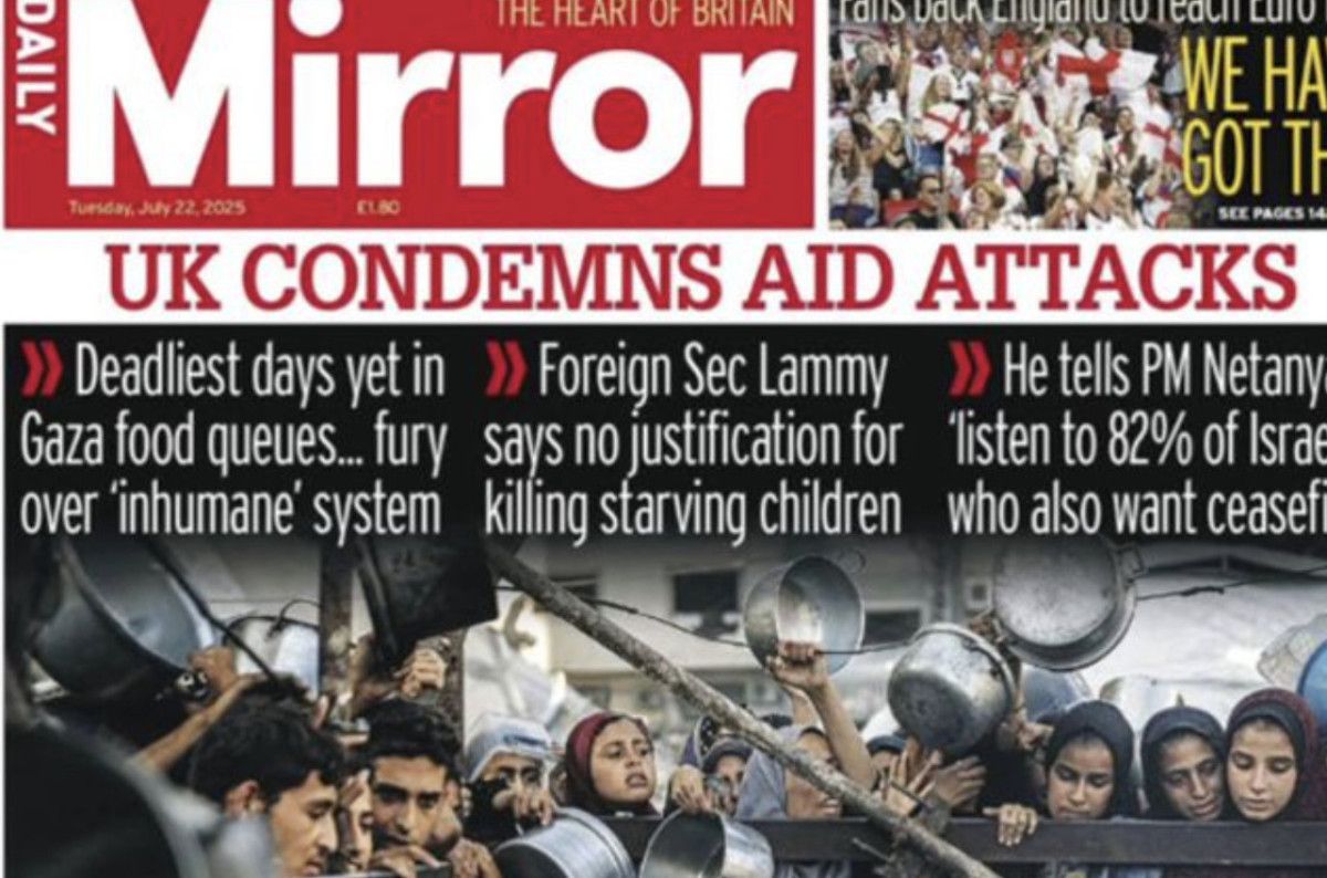 Gazete, 22 Temmuz’da Gazze’ye yer vererek “Artık bu dehşete son verin” çağrısında bulundu.