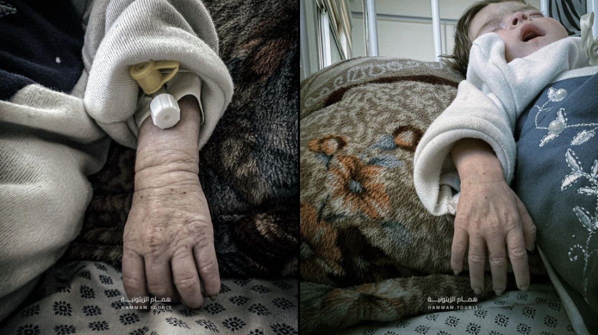 Görüntüde bebeğin minik elleri, açlık ve hastalık nedeniyle adeta bir ihtiyarın elini andırıyor.