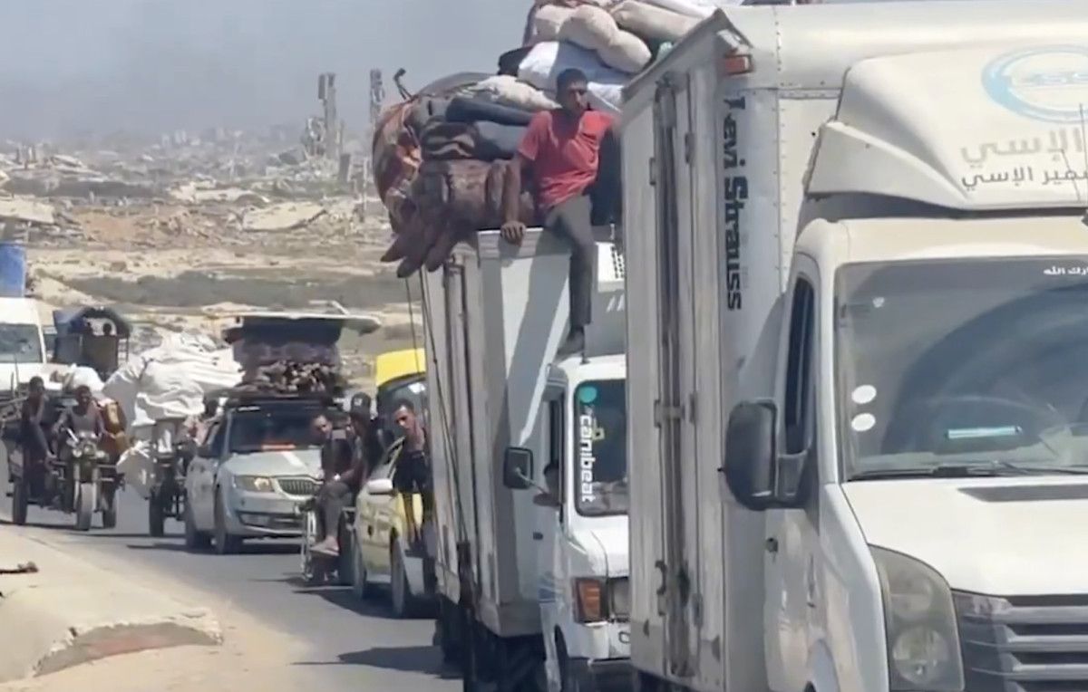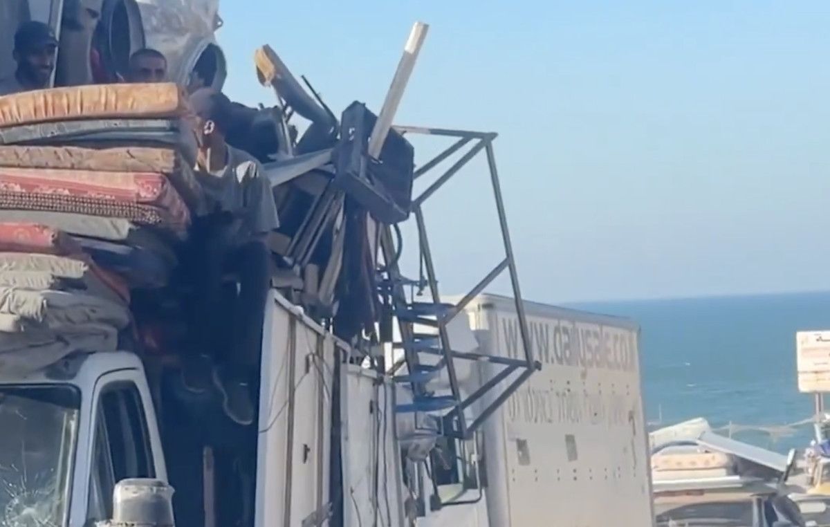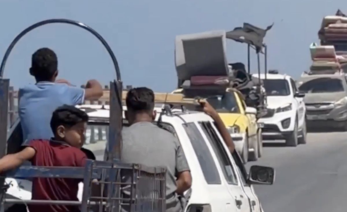 Filistinliler, yanlarına alabildikleri sınırlı eşyaları, yatakları, giysileri ve ev eşyaları, tıka basa doldurdukları kamyonlar, minibüsler ve traktörlerle Reşid Caddesi’ni kullanarak güneye, özellikle Han Yunus ve Refah bölgelerine kaçıyor.