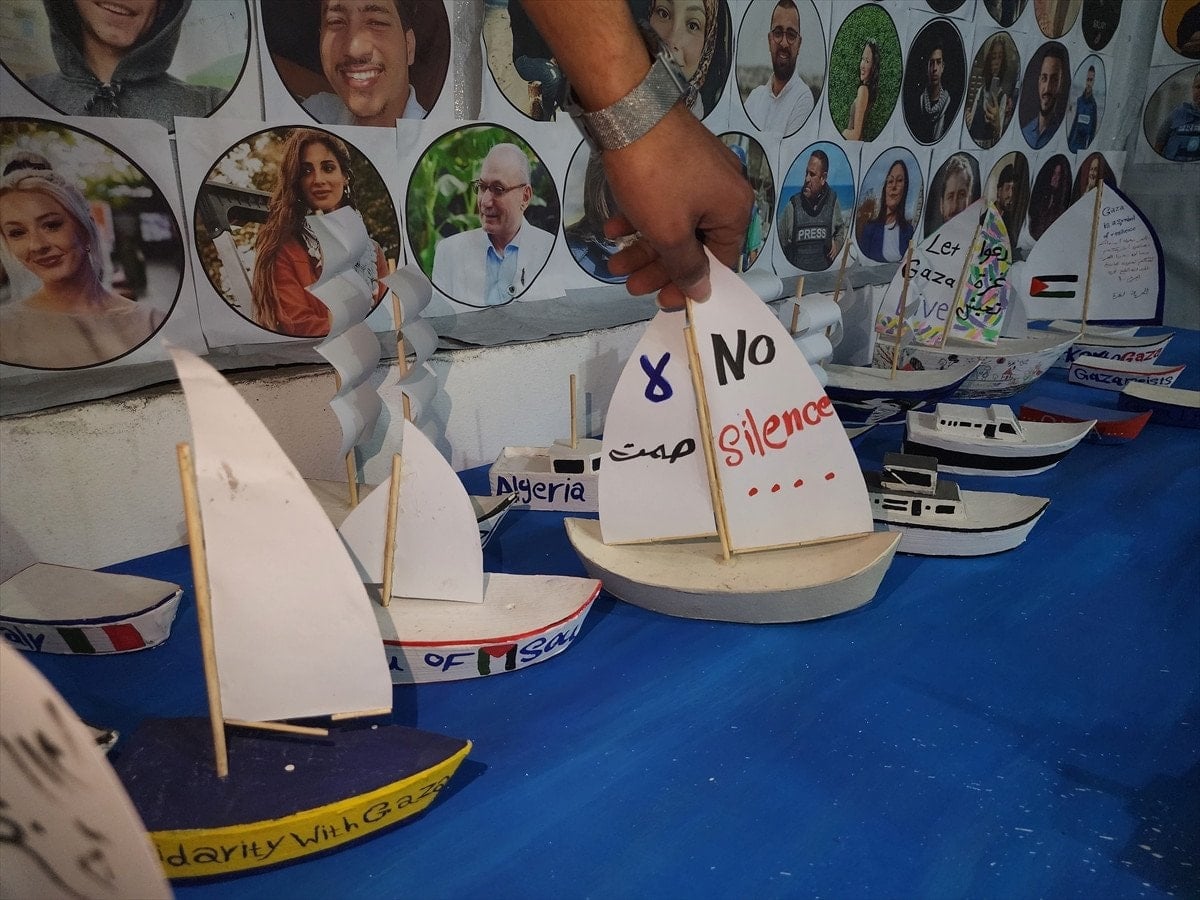 Gençler, yalnızca karadaki yıkımı değil, denizdeki ablukayı da çalışmalarına yansıttı. Gazze açıklarında ablukayı kırmak için yola çıkan tekneler ve onları durduran savaş gemileri de maketlerde yer buldu. Ayrıca, Gazze halkıyla dayanışma gösteren gazeteci ve aktivistlerin fotoğrafları da sergilenerek, hayatını kaybedenlere dikkat çekildi.