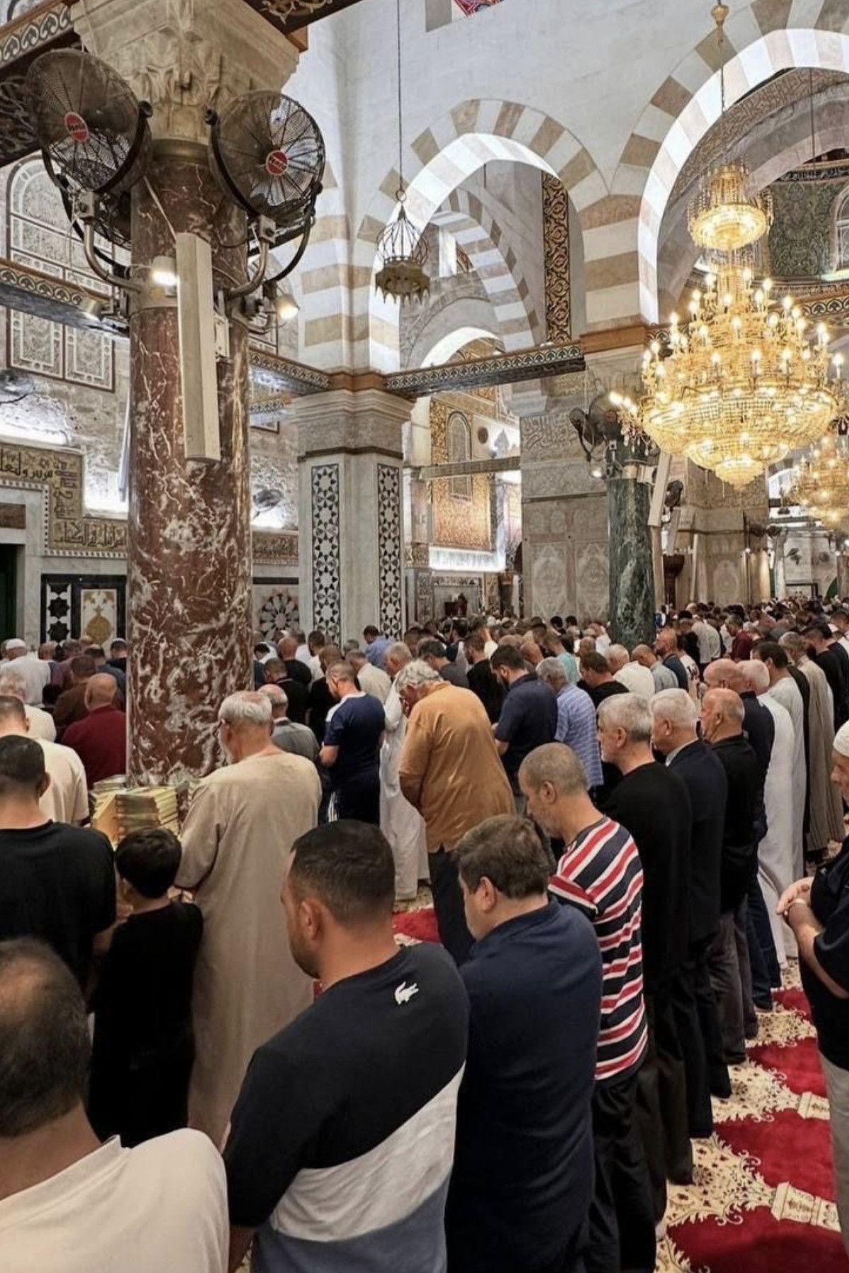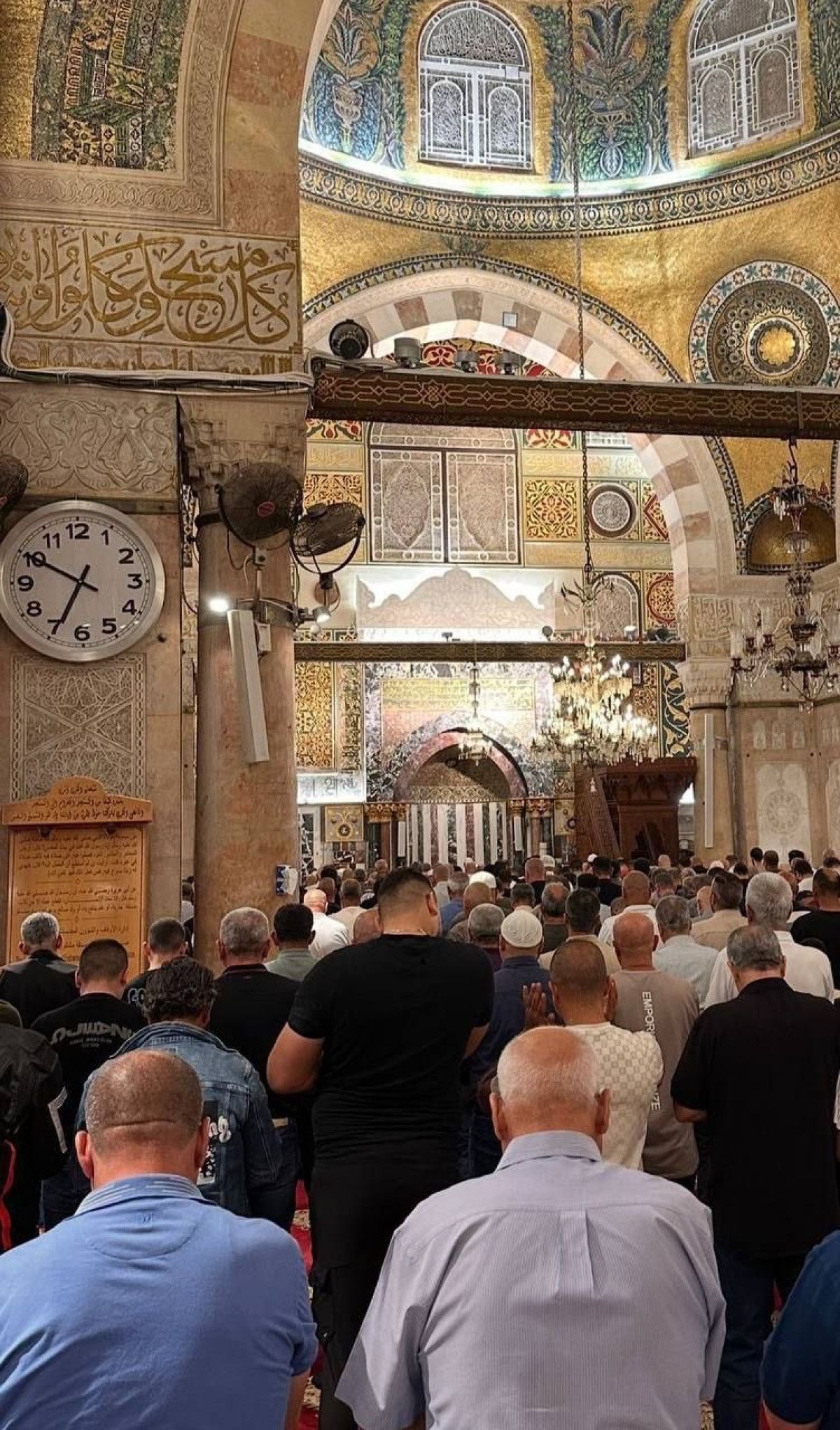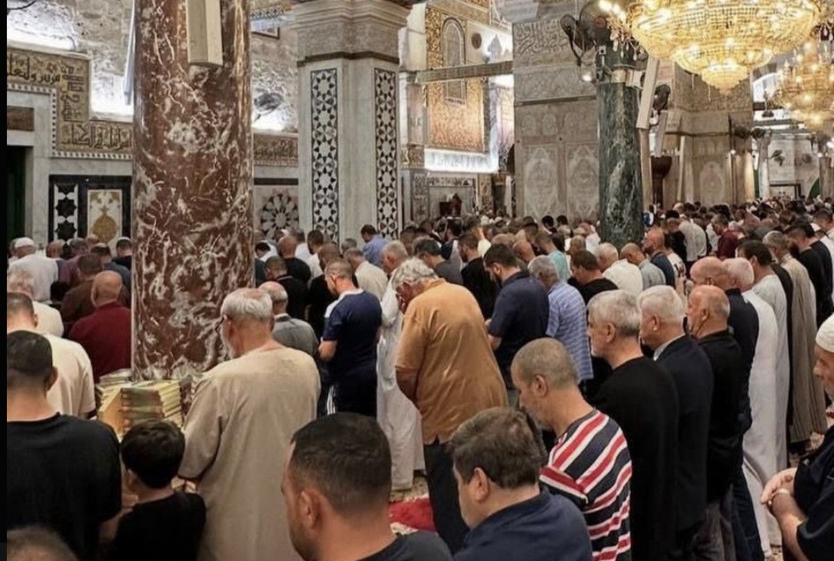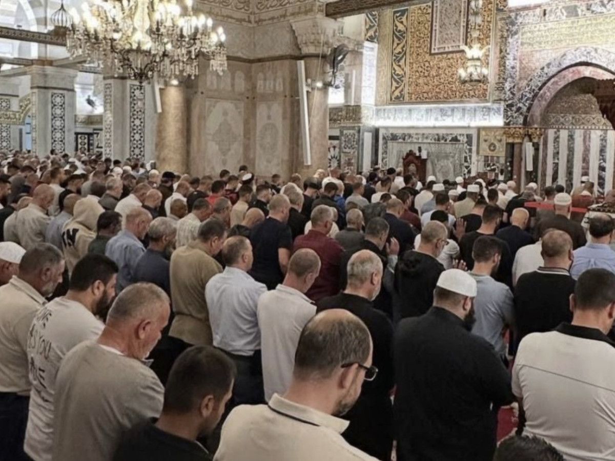 Yetişkin ve çocuk her yaştan kadın ve erkek, Mekke’deki Mescid-i Haram ve Medine’deki Mescid-i Nebevi’den sonra en kutsal üçüncü cami Mescid-i Aksa’da saf tuttu.