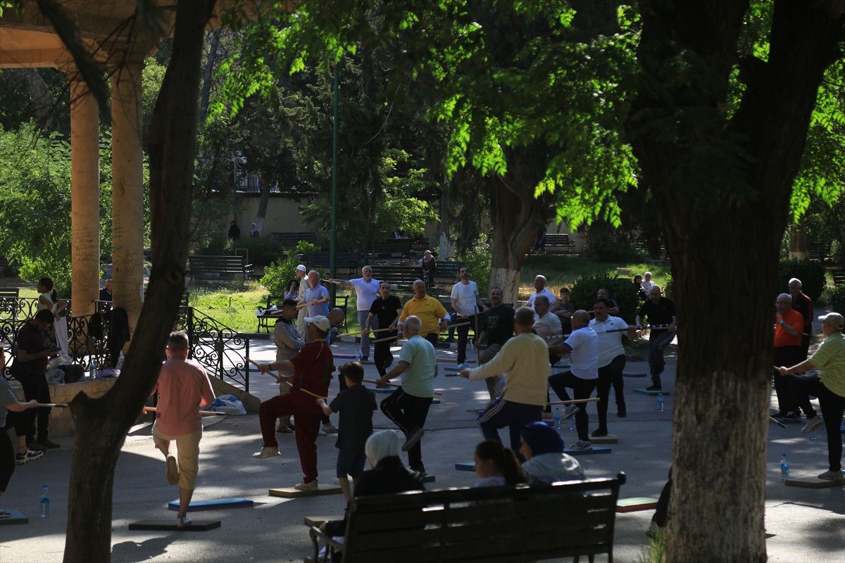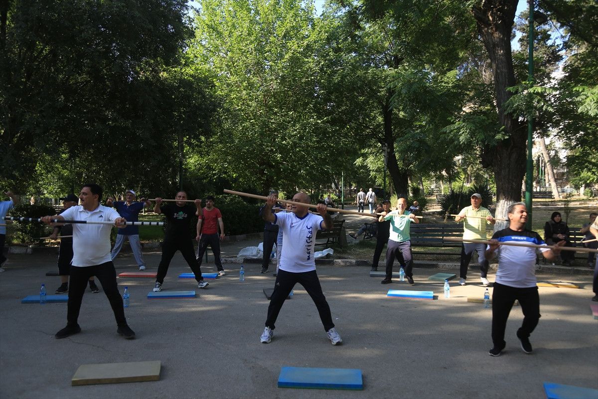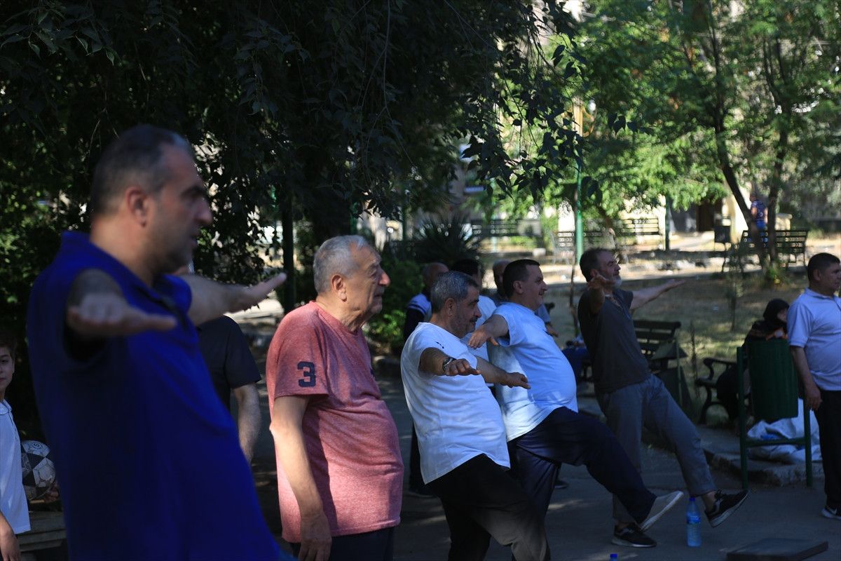 Kadın, erkek, genç, yaşlı demeden çok sayıda kişi, Sporseverler Bireysel Sporlar Teknik Komitesine bağlı eğitmenlerin gözetiminde aerobik ve çeşitli egzersizler yapıyor.