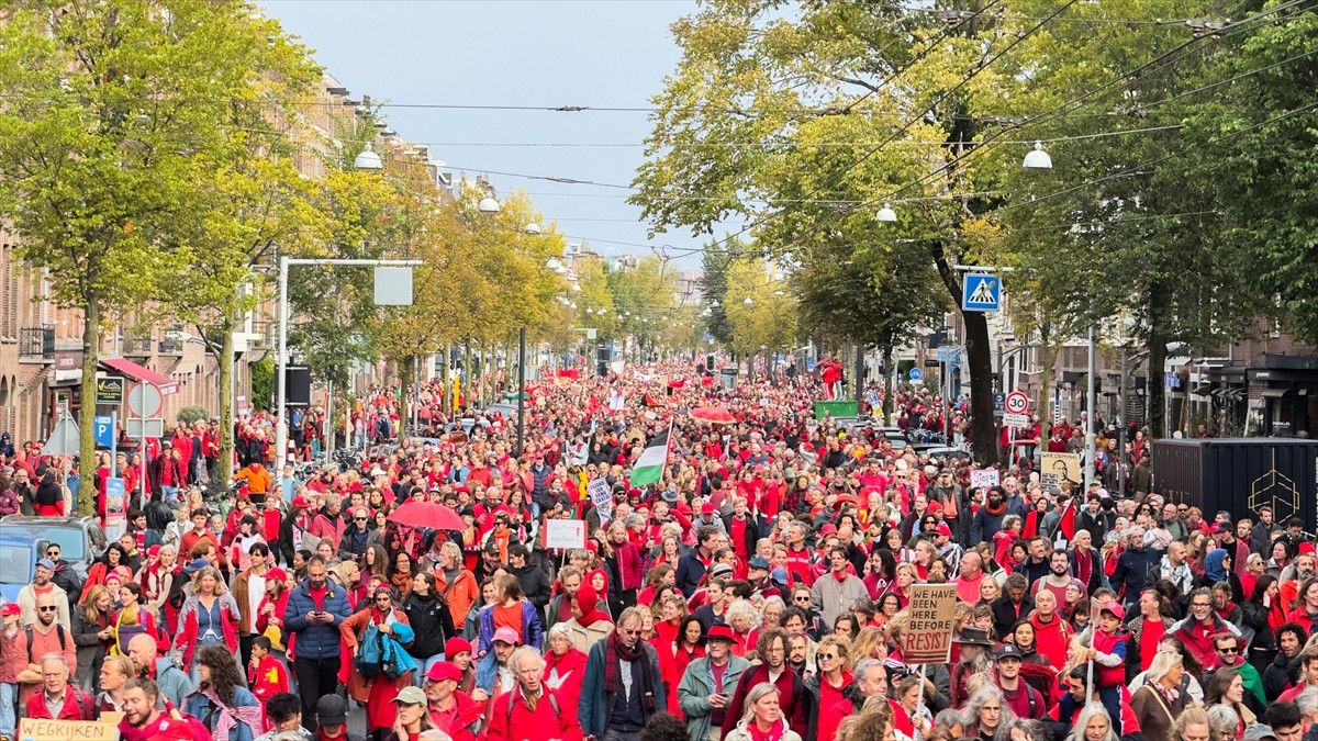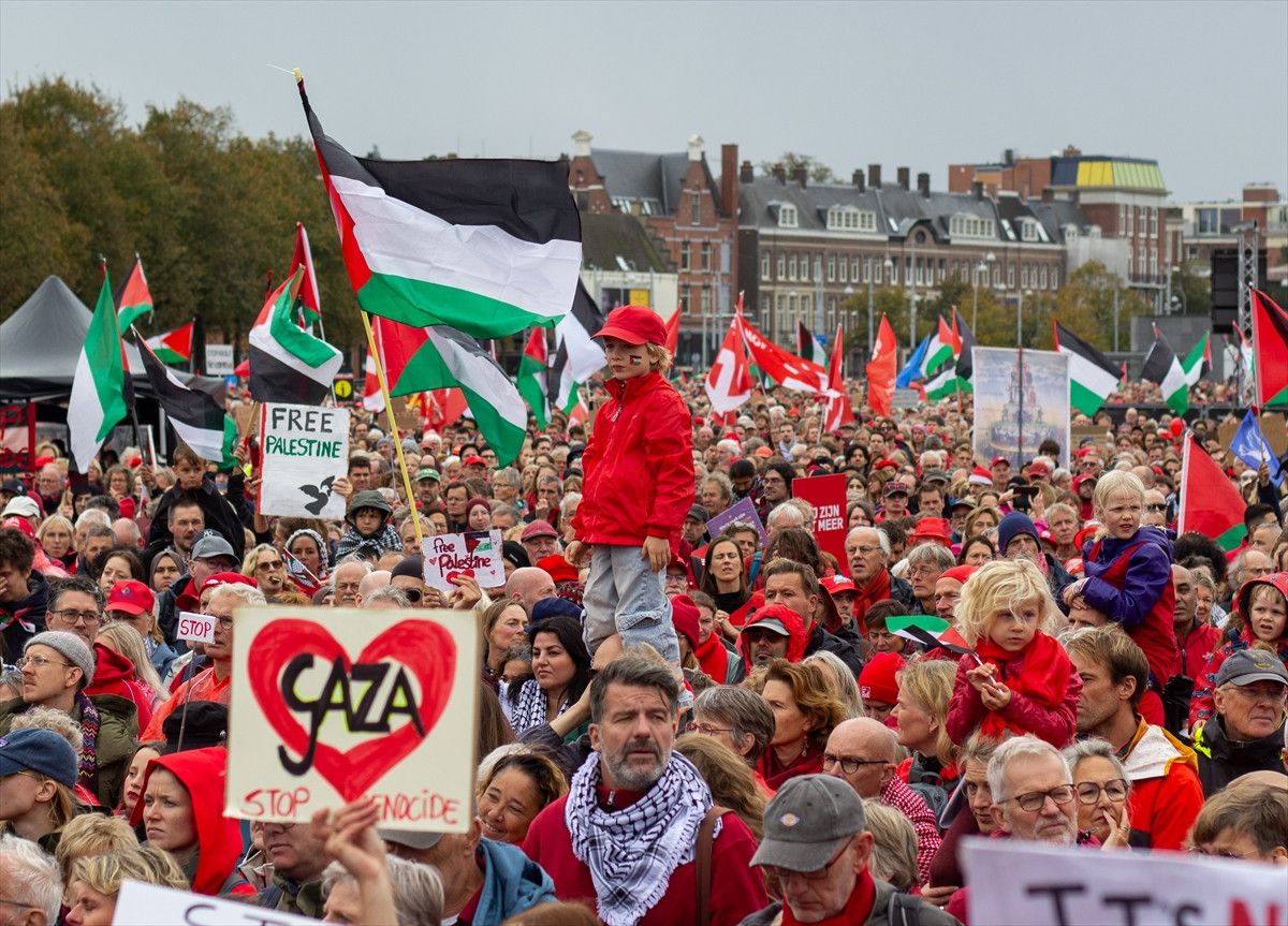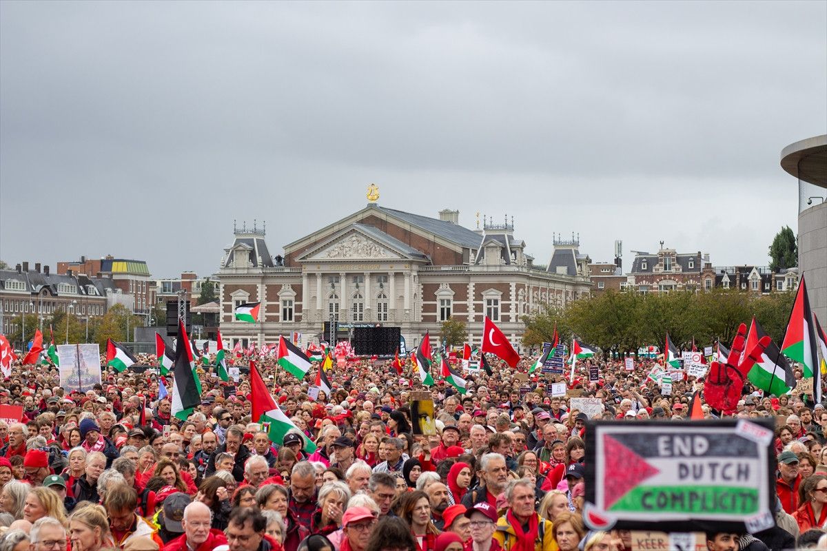Hollanda’nın başkenti Amsterdam’da toplanan yaklaşık 250 bin kişi, hükümetin İsrail yanlısı politikasına tepki gösterdi.