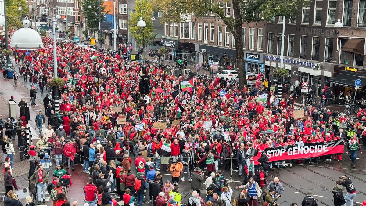 Gösteri, Hollanda tarihinin Filistin’e destek amacıyla düzenlenen en geniş katılımlı eylemi olarak değerlendiriliyor.
