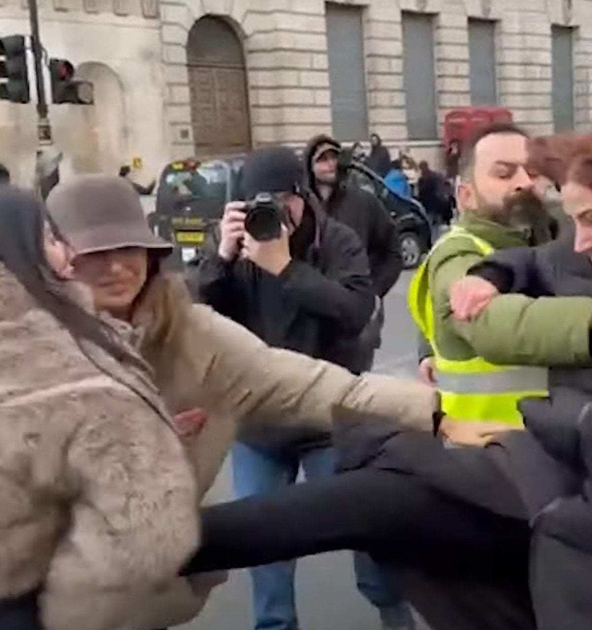 YPG/SDG yandaşları, düzenlediği gösterilerde provokatif eylemlere imza atarken bu kez Trafalgar Meydanı’nda toplandı.
