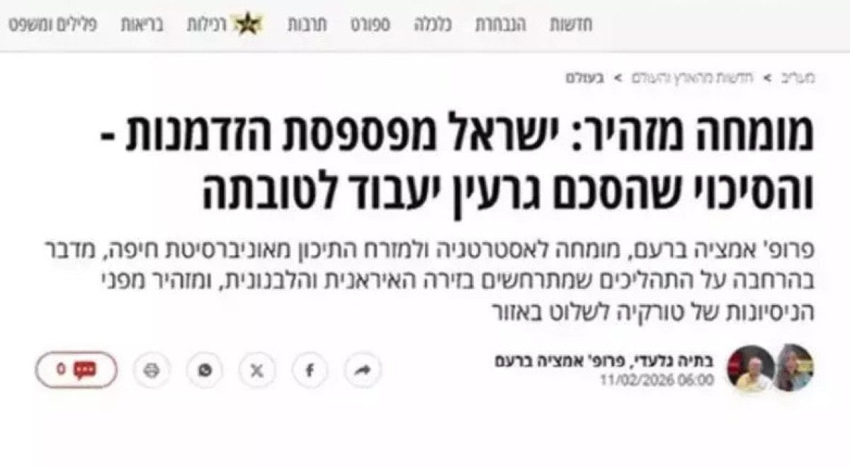 Maariv gazetesine değerlendirmelerde bulunan Hayfa Üniversitesi Strateji ve Orta Doğu Uzmanı Prof. Dr. Amatzia Baram, İran, Lübnan ve ABD-İran hattında yaşanan gelişmelerin İsrail’i çok katmanlı ve zorlu bir stratejik tabloyla karşı karşıya bıraktığını ifade etti.