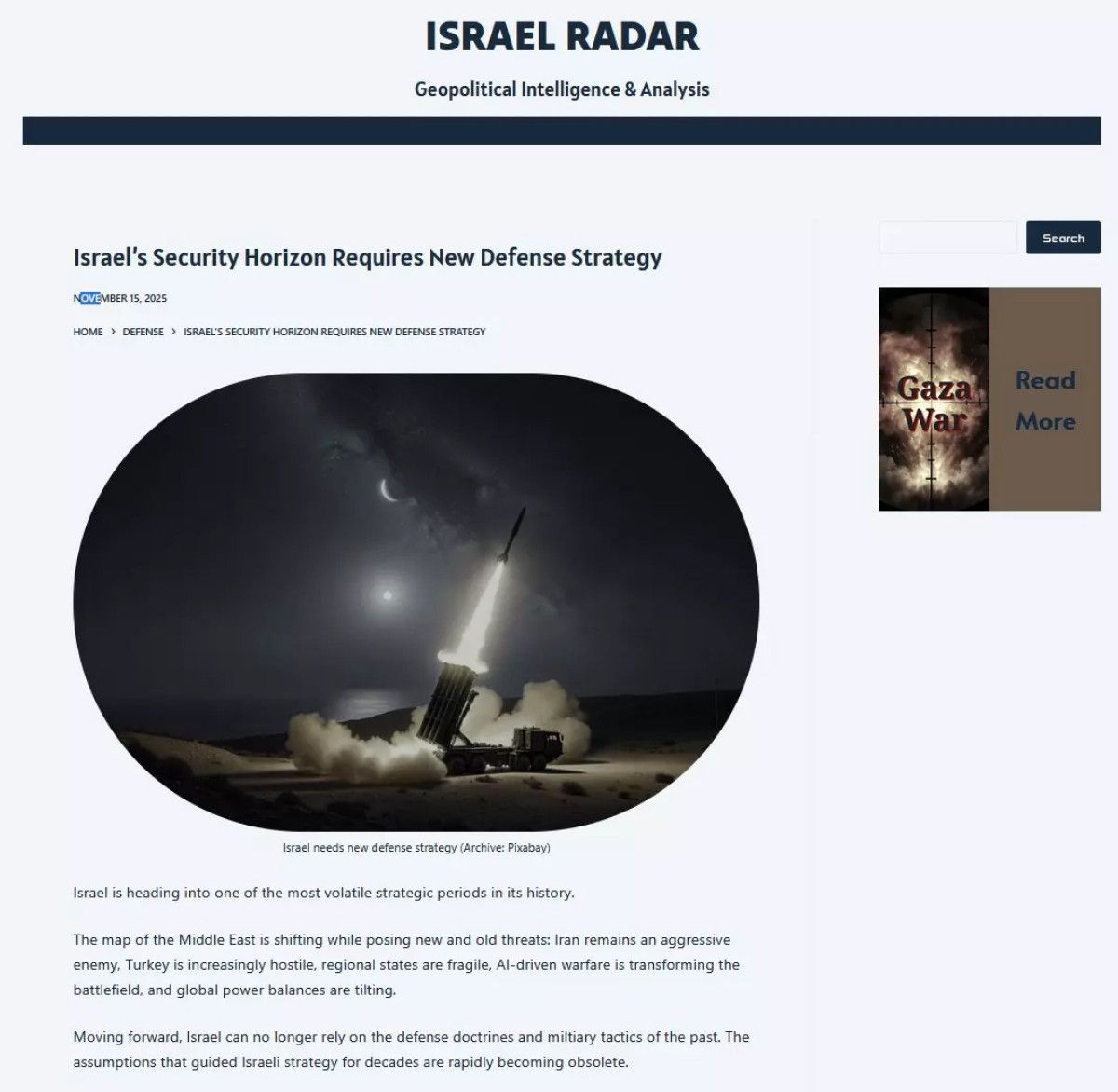 Güvenlik analizi sitesi Israel Radar’da yer alan, “İsrail’in güvenlik ufku yeni bir savunma stratejisi gerektiriyor” başlıklı makalede bölgedeki dengelerin değiştiğine vurgu yapıldı.