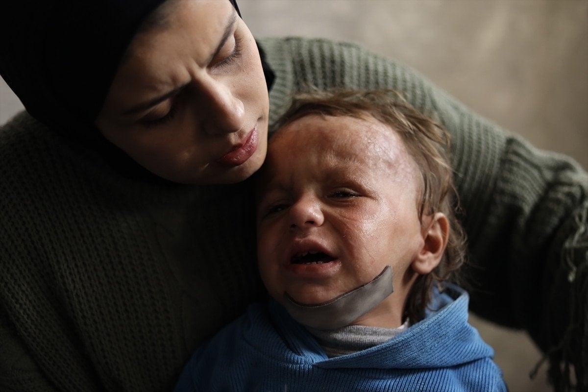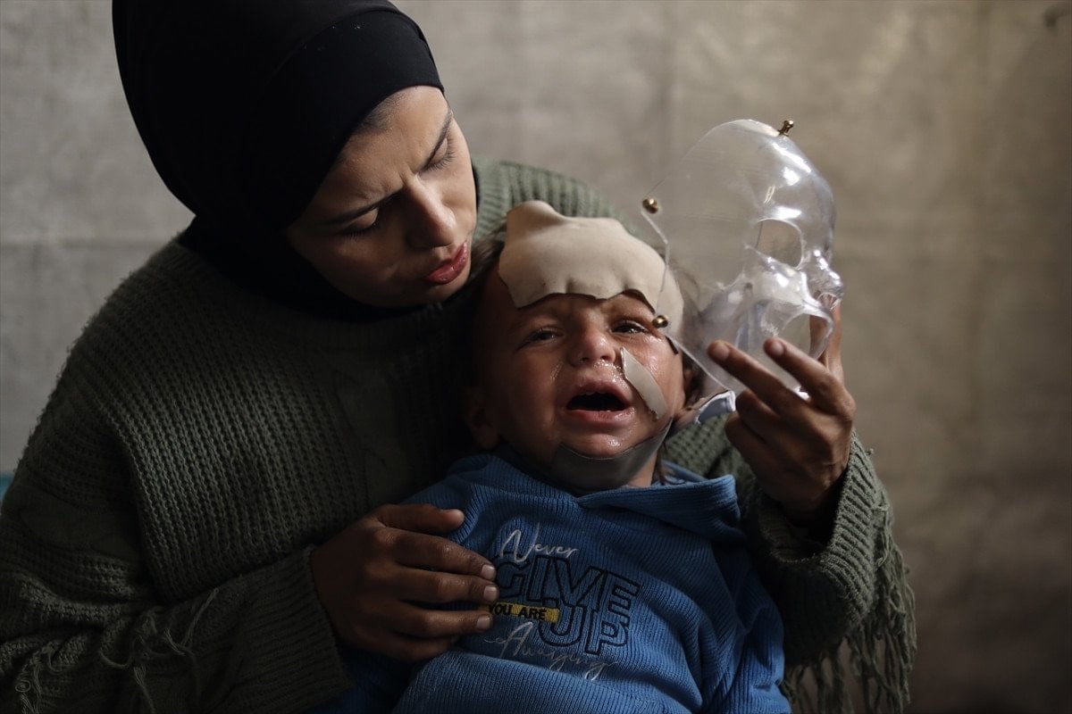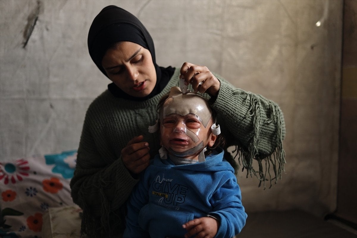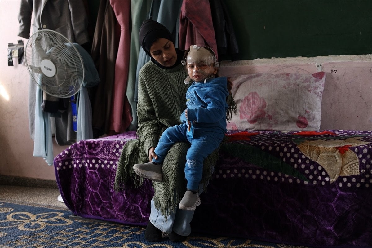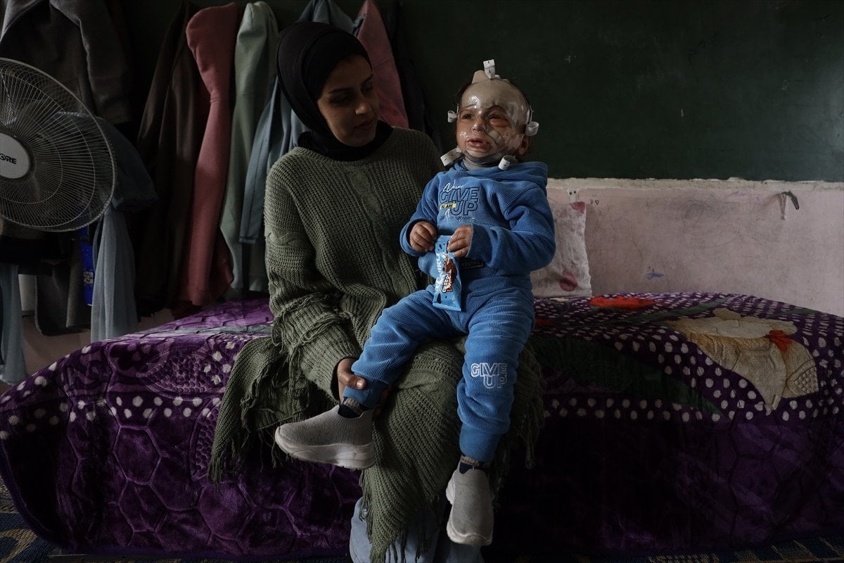 İsrail’in Gazze’nin er-Rimal Mahallesi’ndeki Mustafa Hafız Okulu’na yönelik saldırıda yaralanan 18 aylık Muhammed Ramiz Huceyle ise, savaşın en küçük mağdurlarından biri olarak yaşam mücadelesi veriyor.