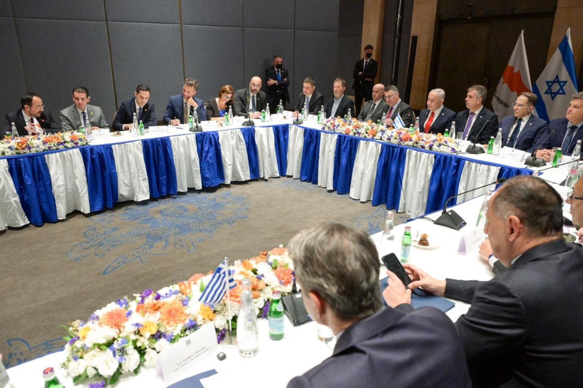 Batı Kudüs’te bir araya gelen İsrail Başbakanı Binyamin Netanyahu, Yunanistan Başbakanı Kiryakos Miçotakis ve Güney Kıbrıs Rum Kesimi (GKRY) lideri Nikos Hristodulidis ortak basın toplantısı düzenledi.