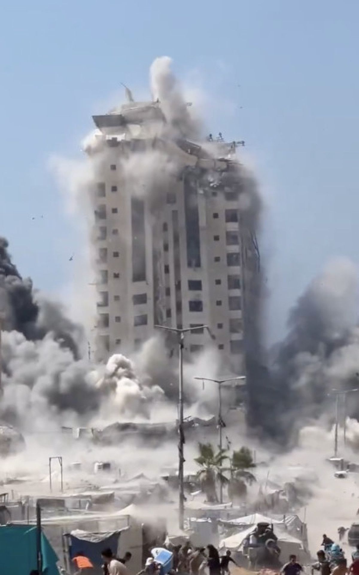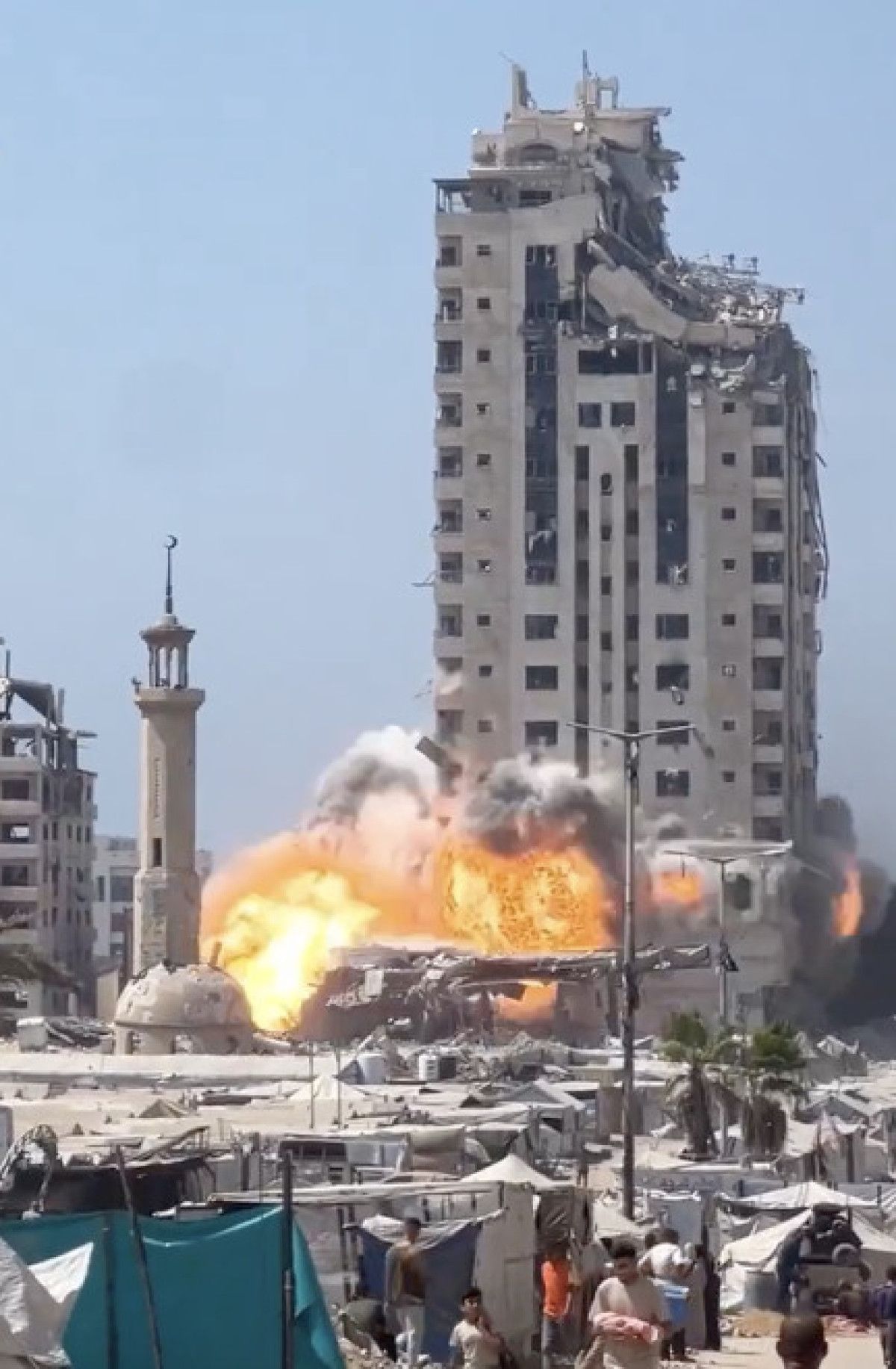 Yüzlerce Filistinlinin sığındığı “Müşteha” adlı çok katlı binanın İsrail ordusunun hava saldırısına maruz kaldığı aktarıldı.
