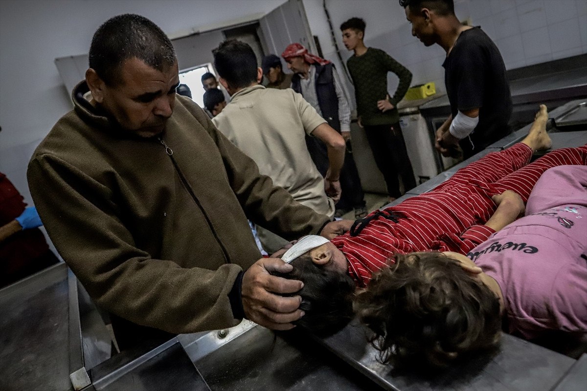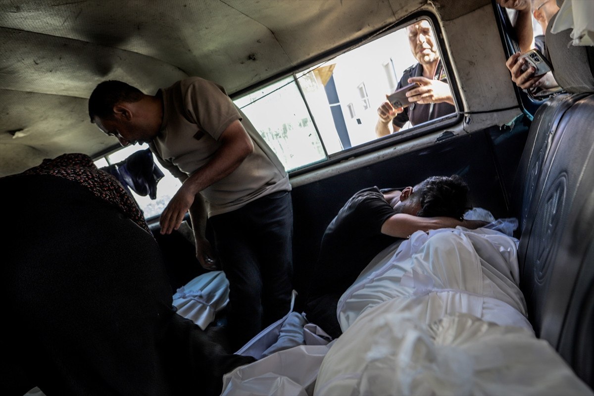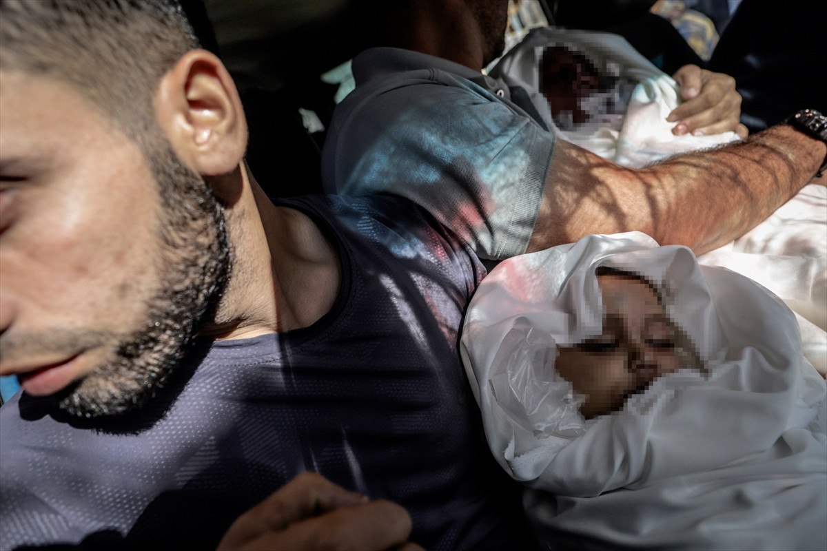 Saldırıda aralarında çocukların da olduğu yaşamını yitirenlerin naaşları, cenaze işlemleri için Gazze kentindeki Şifa Hastanesi’ne getirildi.