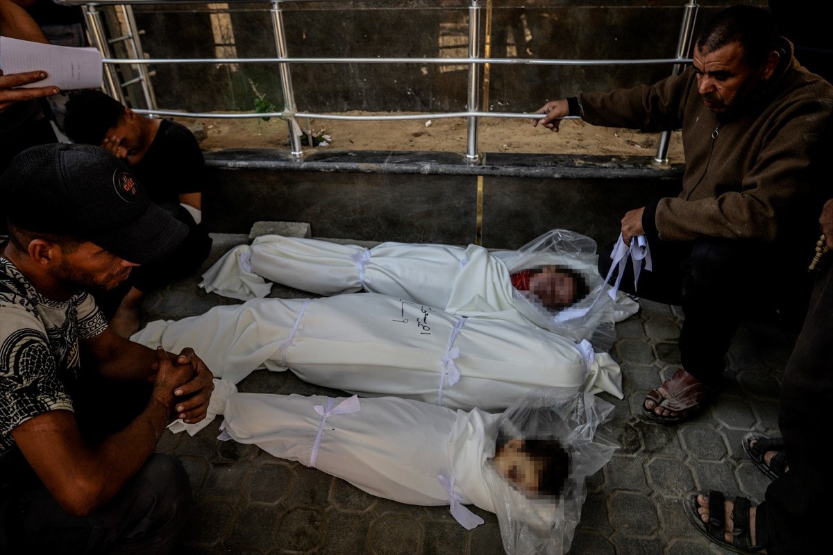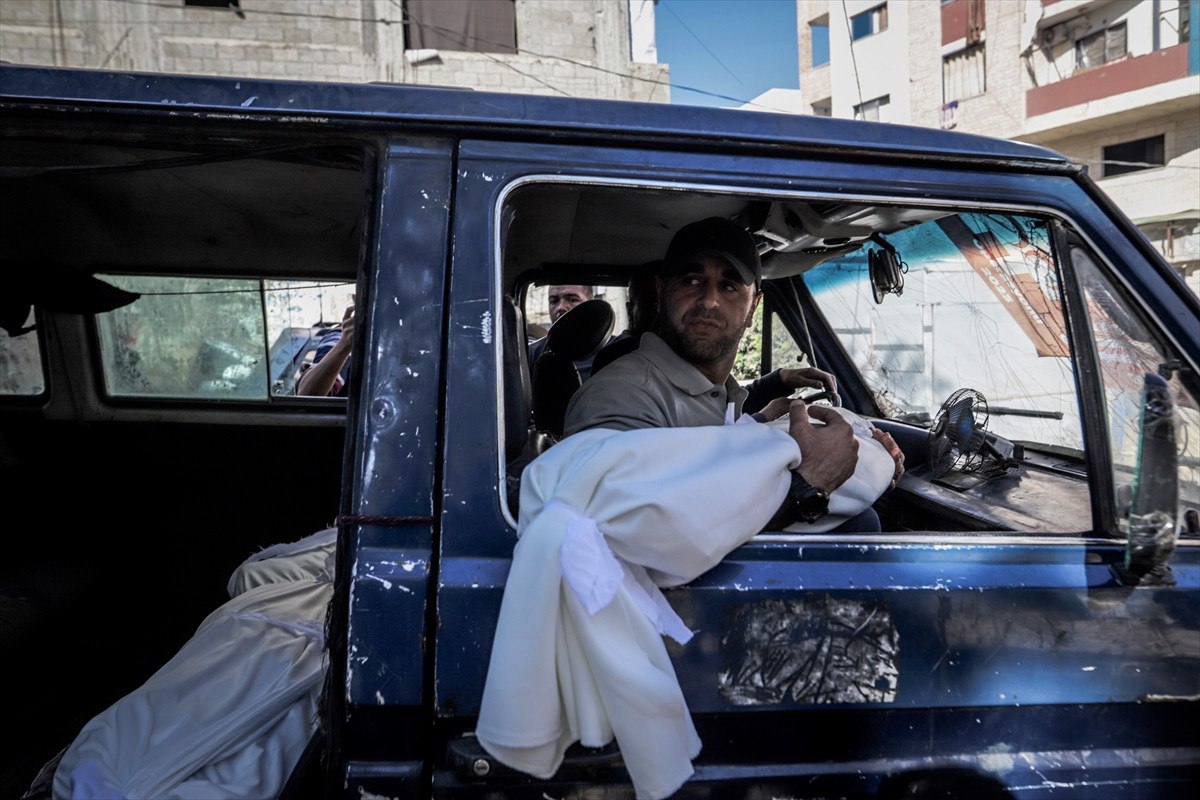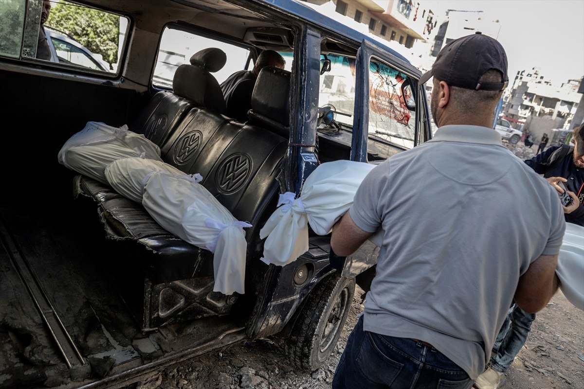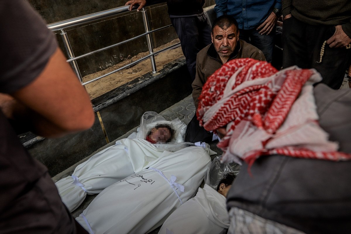 Saldırıda aralarında çocukların da olduğu yaşamını yitirenlerin naaşları, cenaze işlemleri için Gazze kentindeki Şifa Hastanesi’ne getirildi.