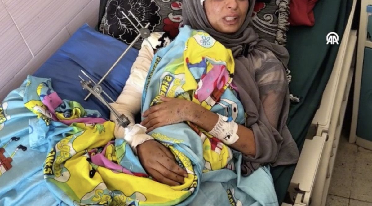 Nasır Hastanesinde kısıtlı tıbbi imkanlarla tedavi olmaya çalışan anne, kolundan ve bacağından aldığı yaralardan ötürü çok acı çektiğini ifade etti.