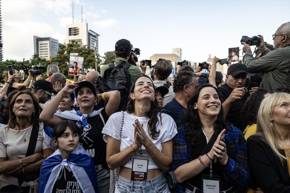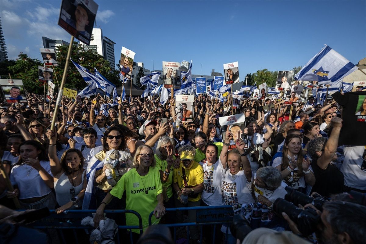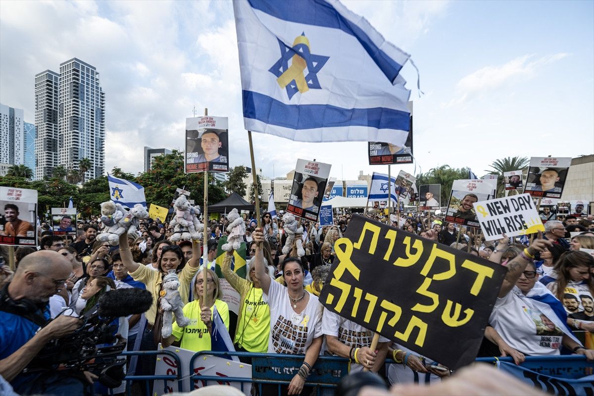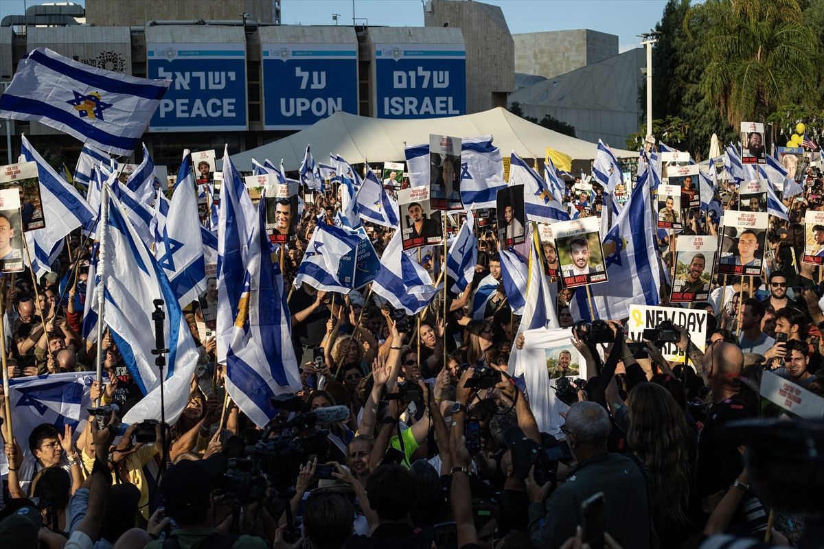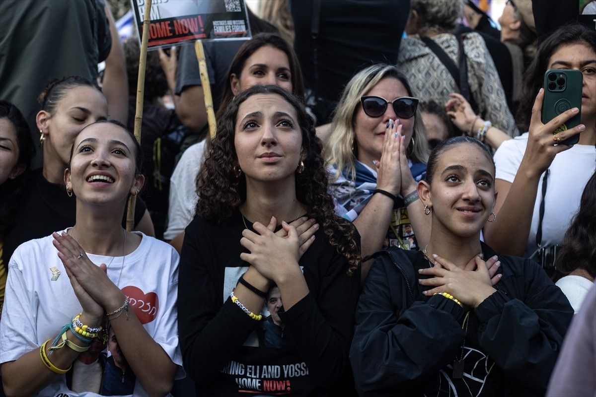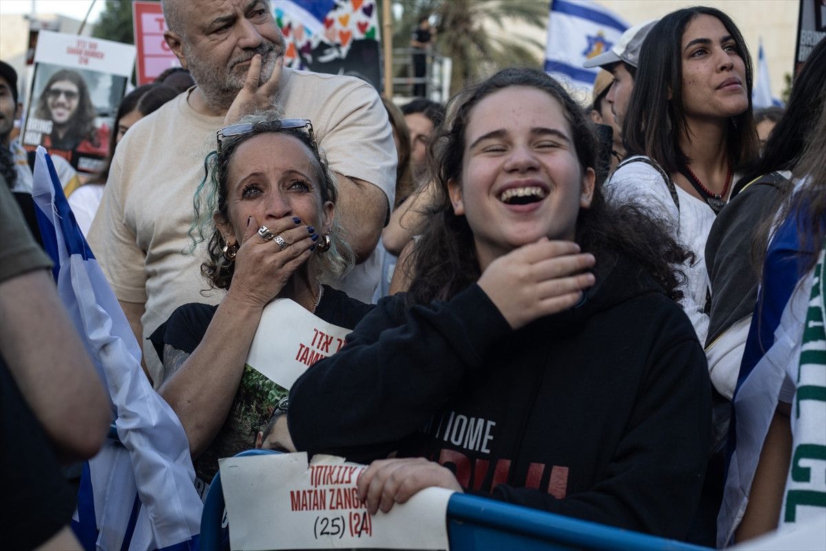 Filistin topraklarını gasbeden İsrailliler, Gazze’de yürürlüğe giren ateşkes anlaşması sonrası gerçekleşecek esir takasını Tel Aviv’de kurulan ekranlardan takip etti.