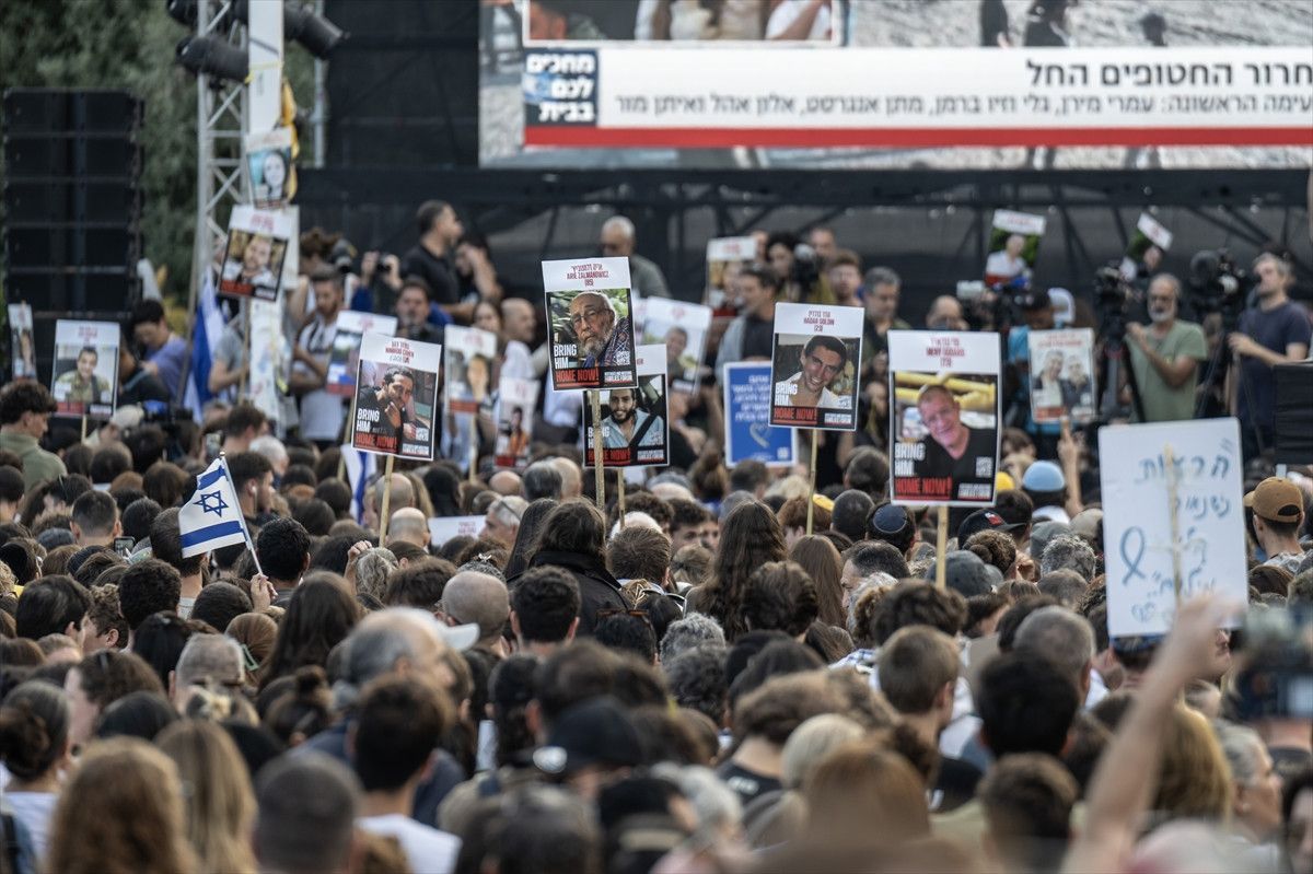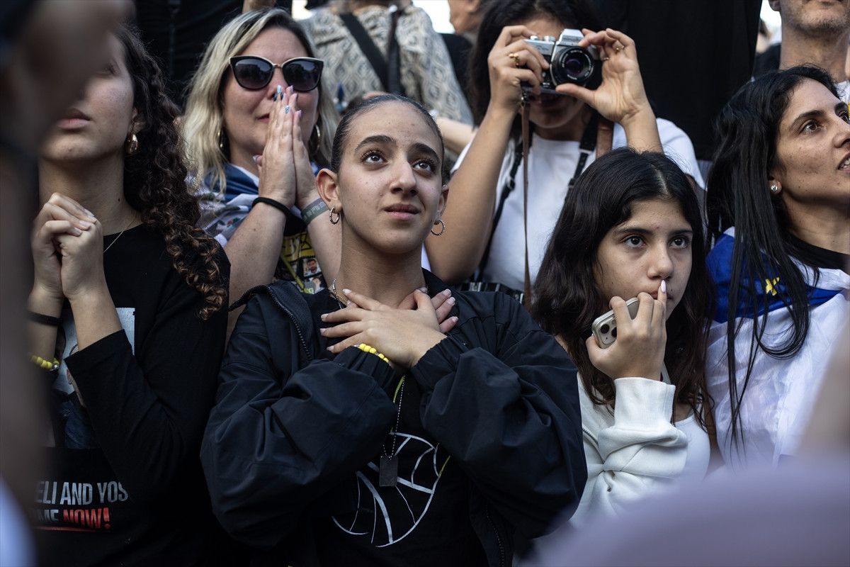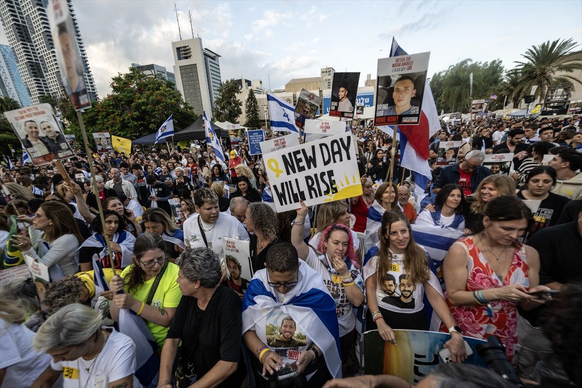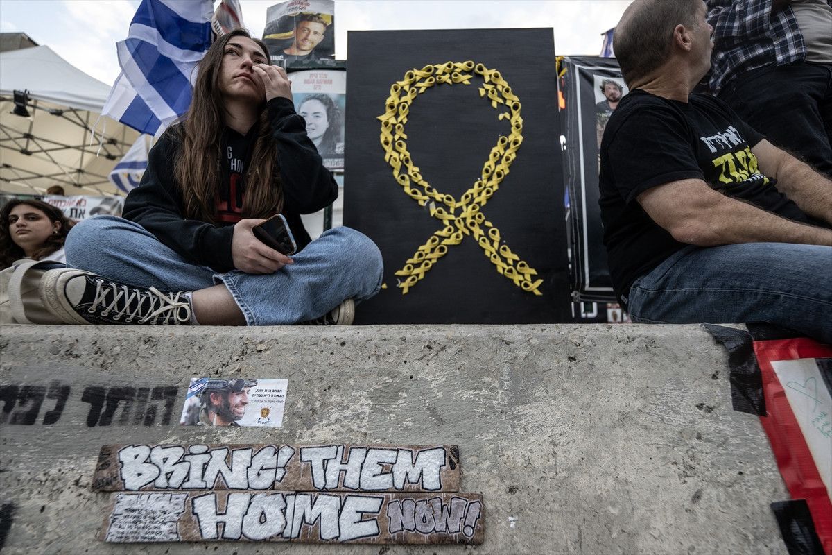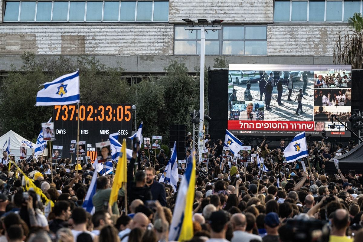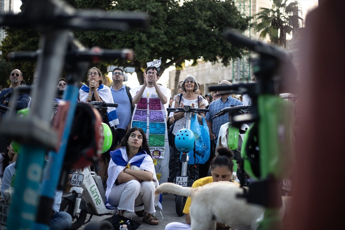 Filistin topraklarını gasbeden İsrailliler, Gazze’de yürürlüğe giren ateşkes anlaşması sonrası gerçekleşecek esir takasını Tel Aviv’de kurulan ekranlardan takip etti.