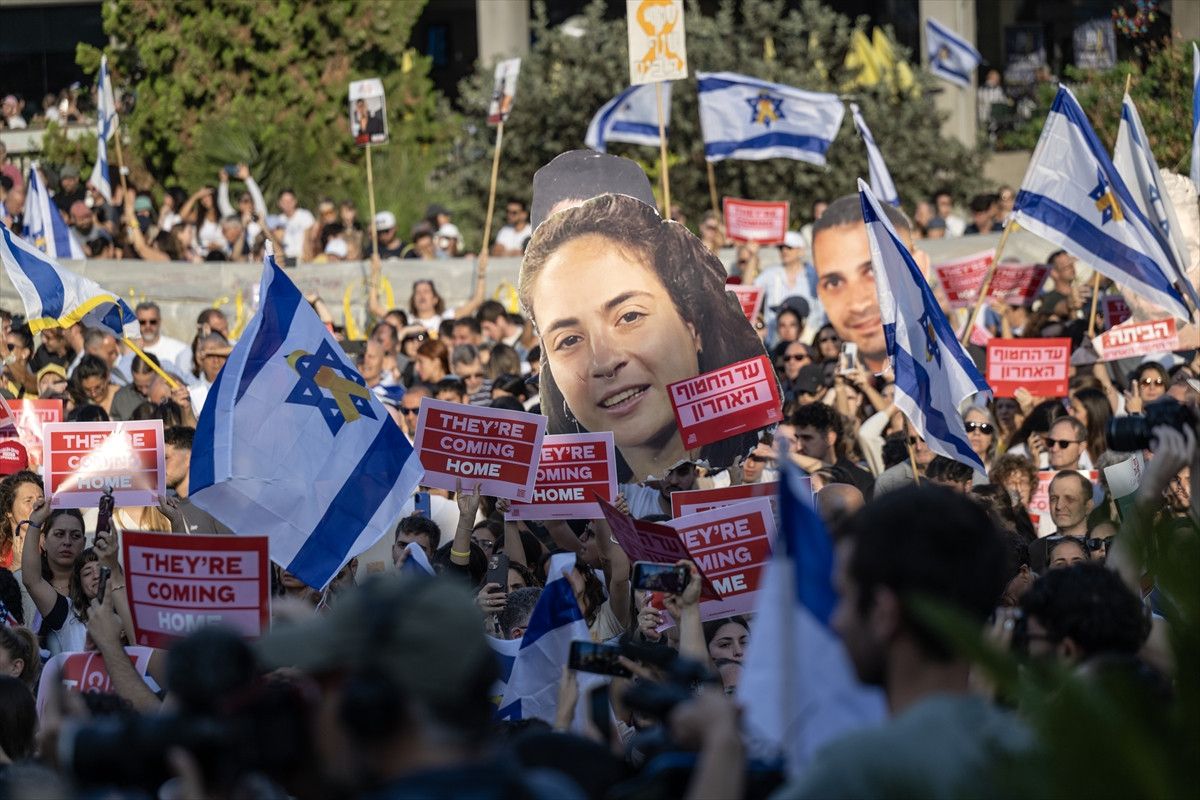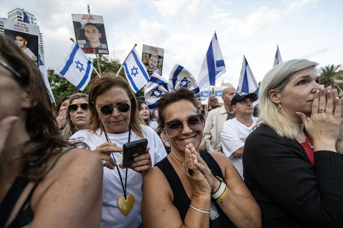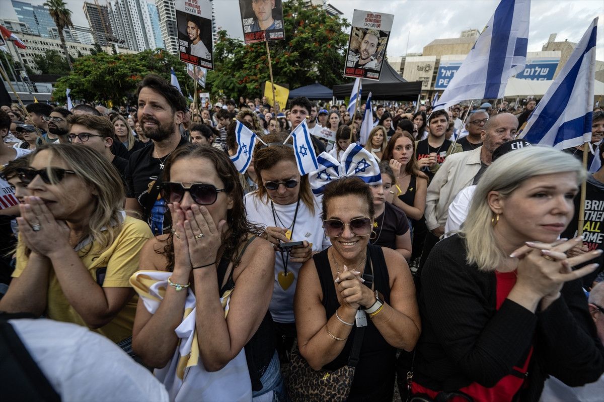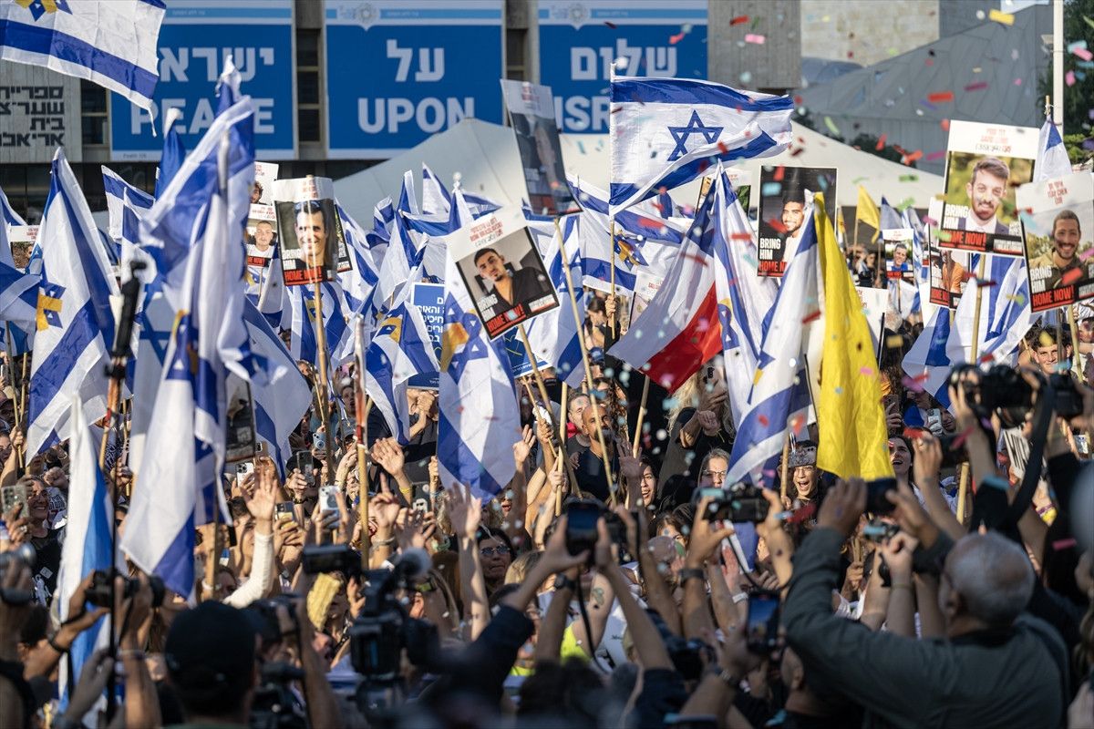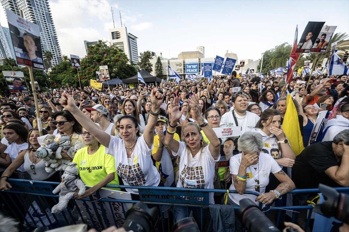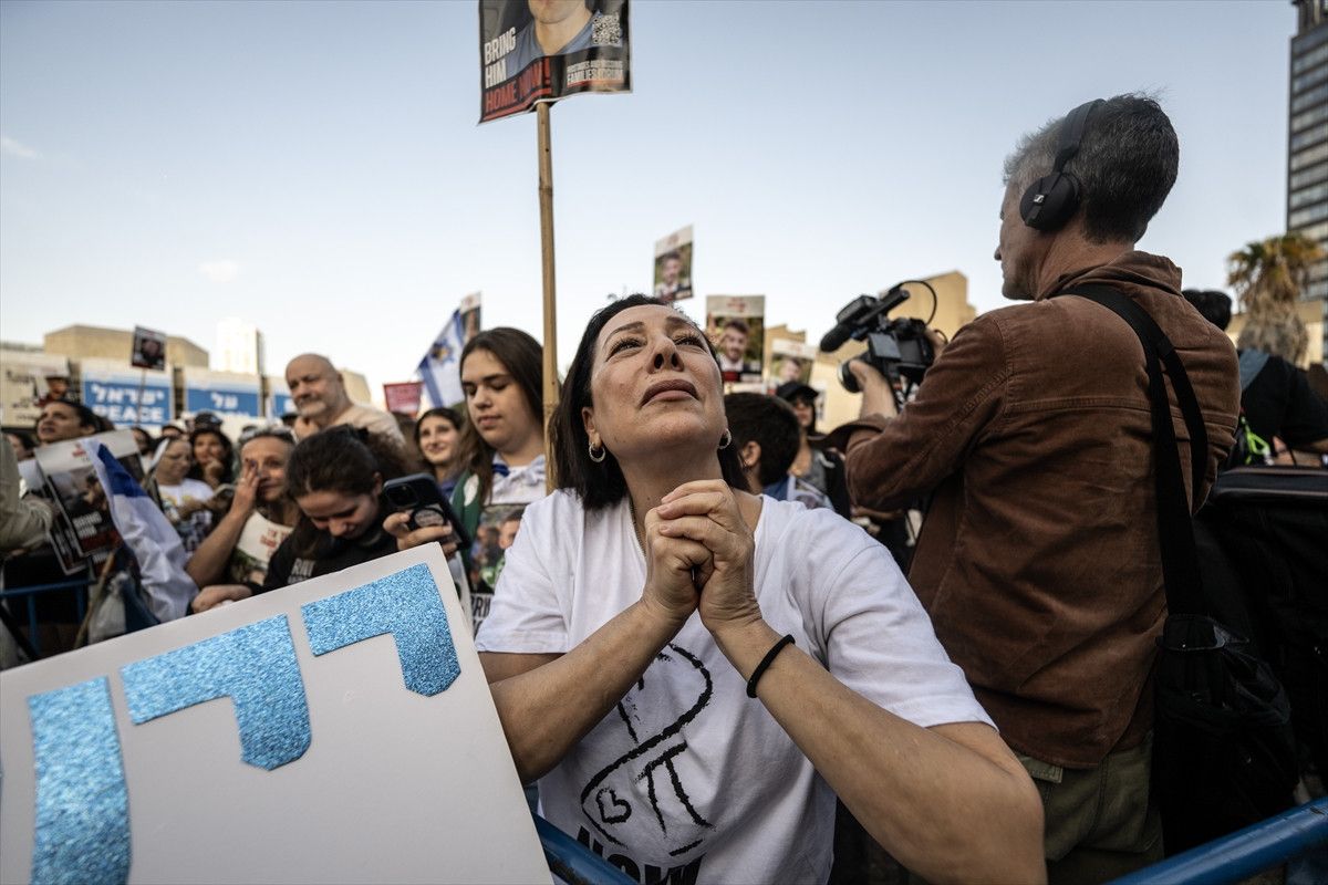 Filistin topraklarını gasbeden İsrailliler, Gazze’de yürürlüğe giren ateşkes anlaşması sonrası gerçekleşecek esir takasını Tel Aviv’de kurulan ekranlardan takip etti.