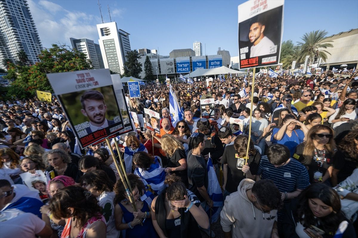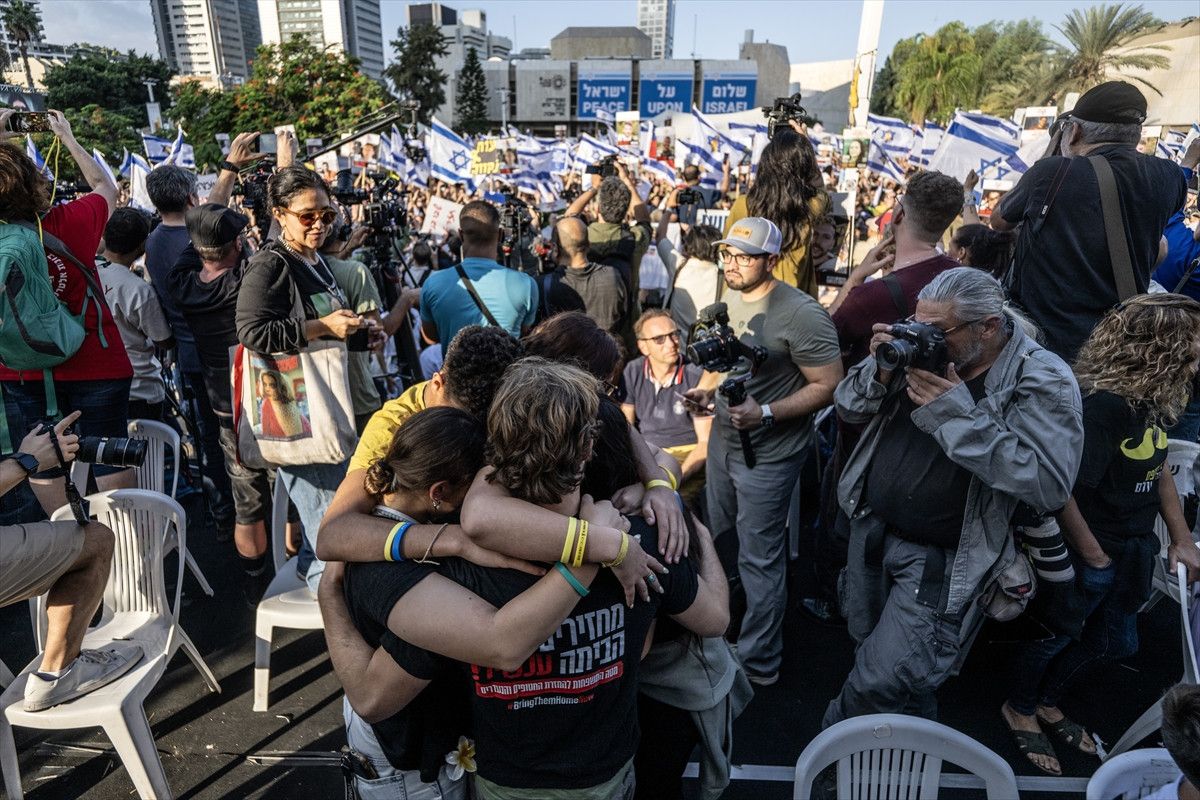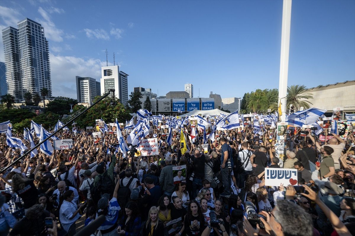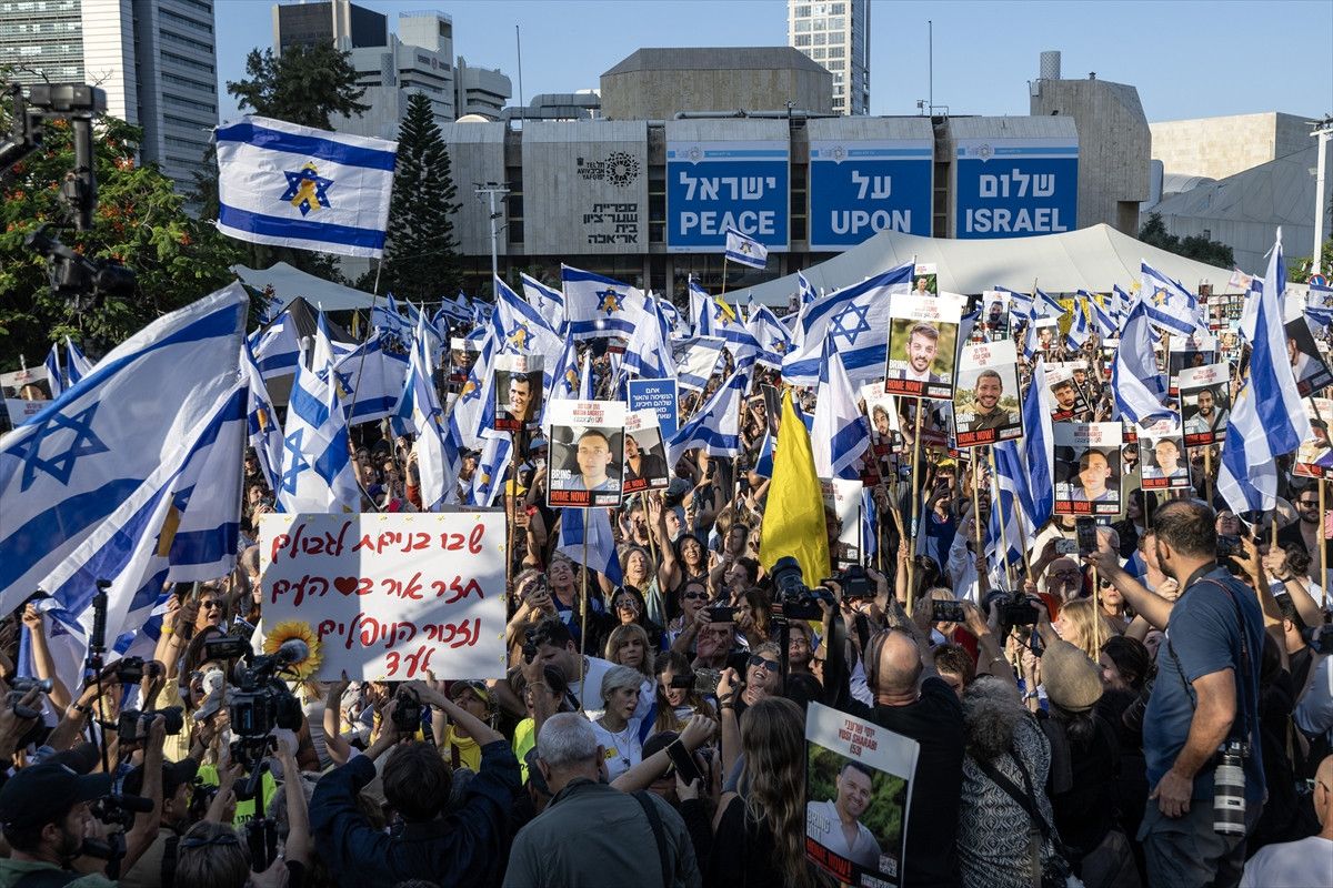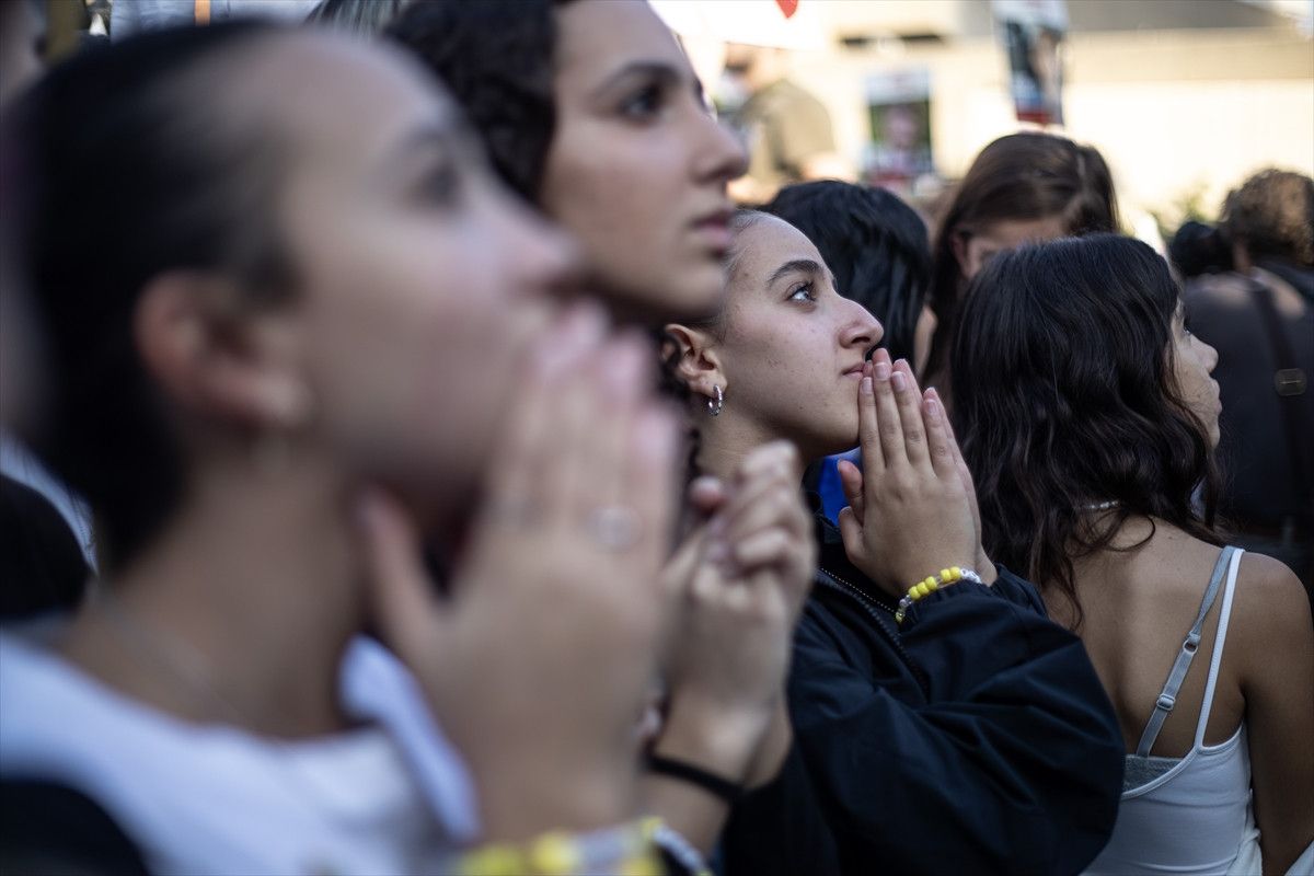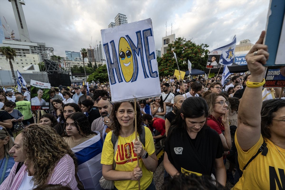 Filistin topraklarını gasbeden İsrailliler, Gazze’de yürürlüğe giren ateşkes anlaşması sonrası gerçekleşecek esir takasını Tel Aviv’de kurulan ekranlardan takip etti.