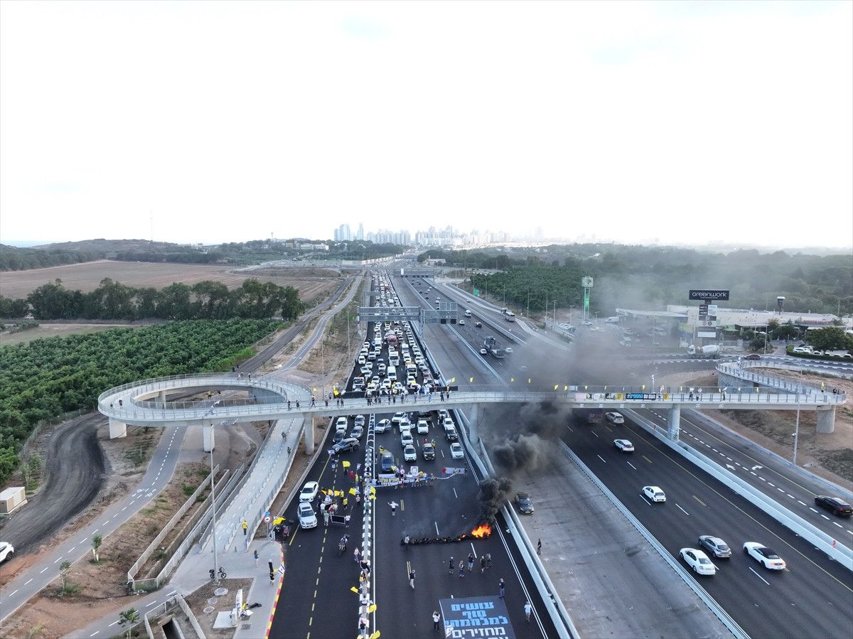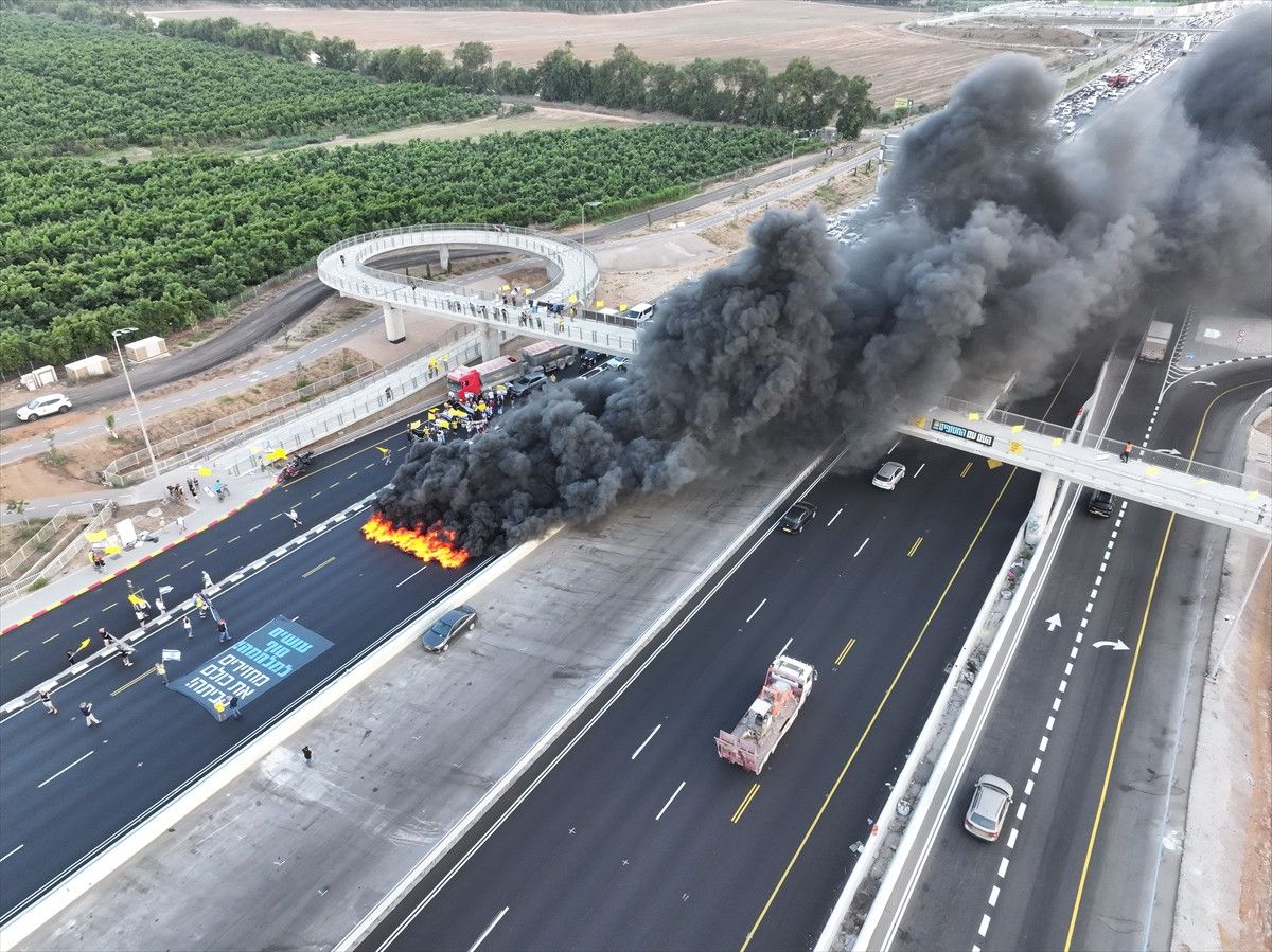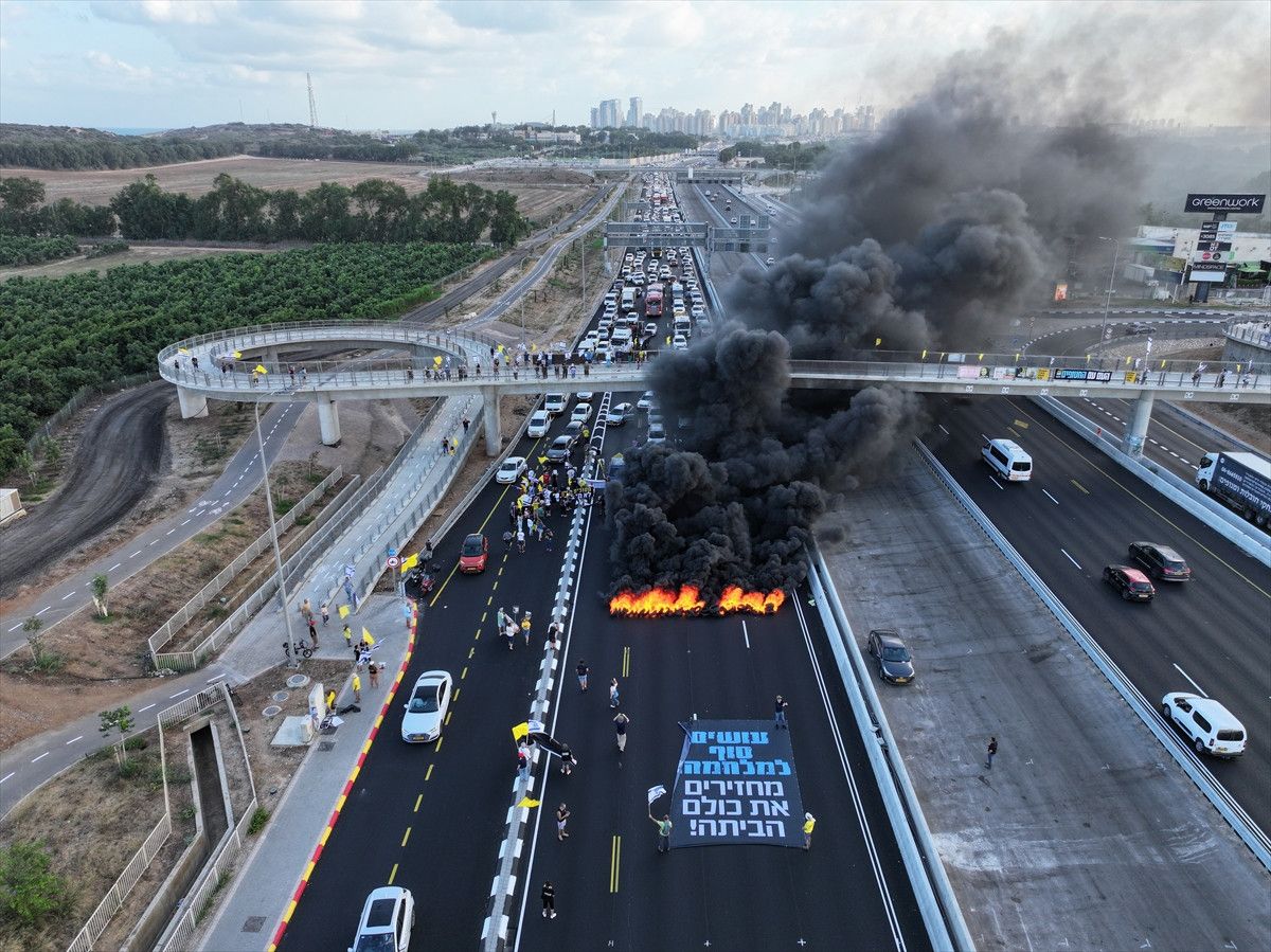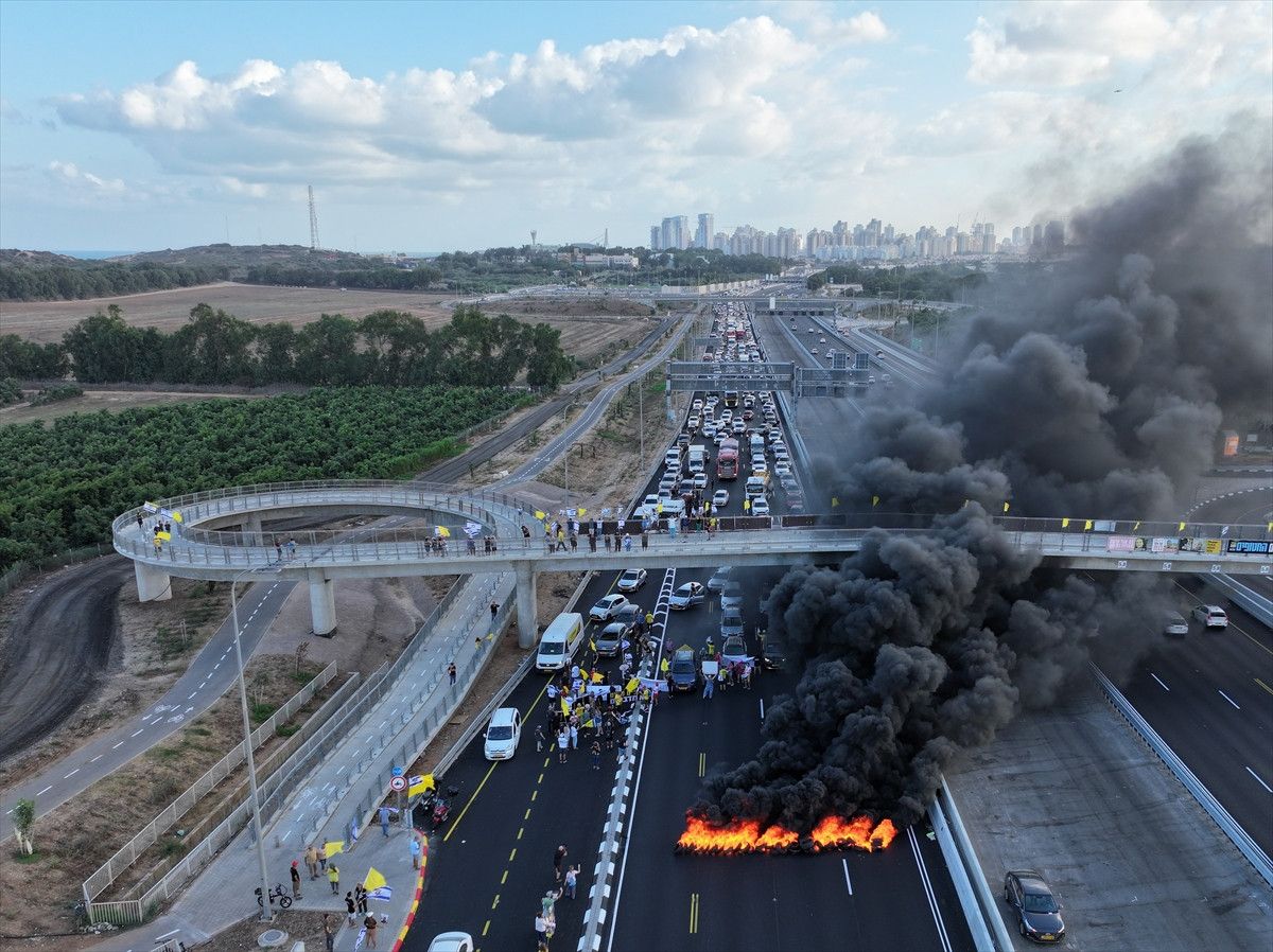 İsrailliler, Tel Aviv’deki bazı ana yolları kapatarak Gazze’de tutulan İsraillilerin geri getirilmesi için protesto gösterisi düzenledi.