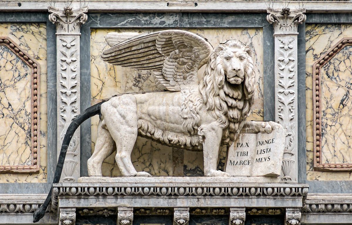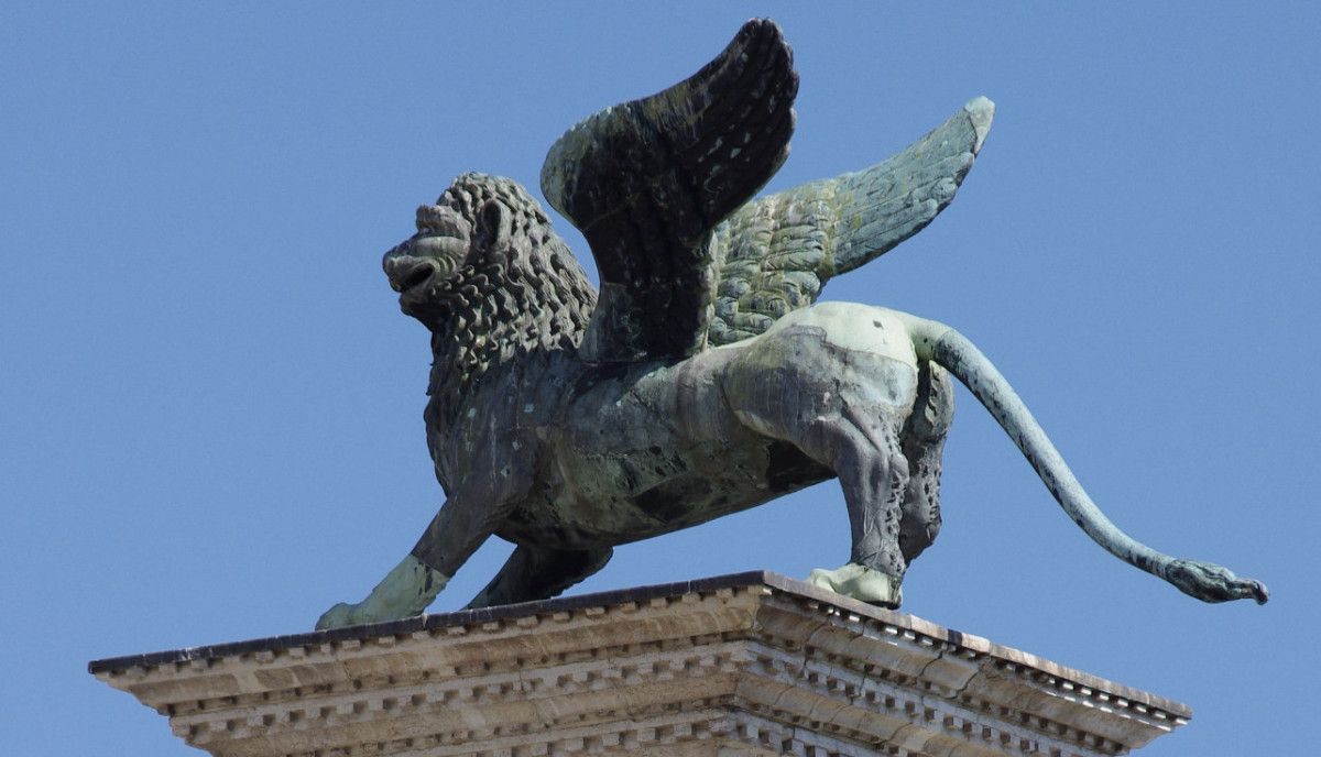 1293 tarihli belgeler, Venedik’in büyük sütunlarının üzerindeki aslan heykelinin o dönemde bile hasarlı olduğunu ve restorasyona ihtiyaç duyduğunu kaydediyor.