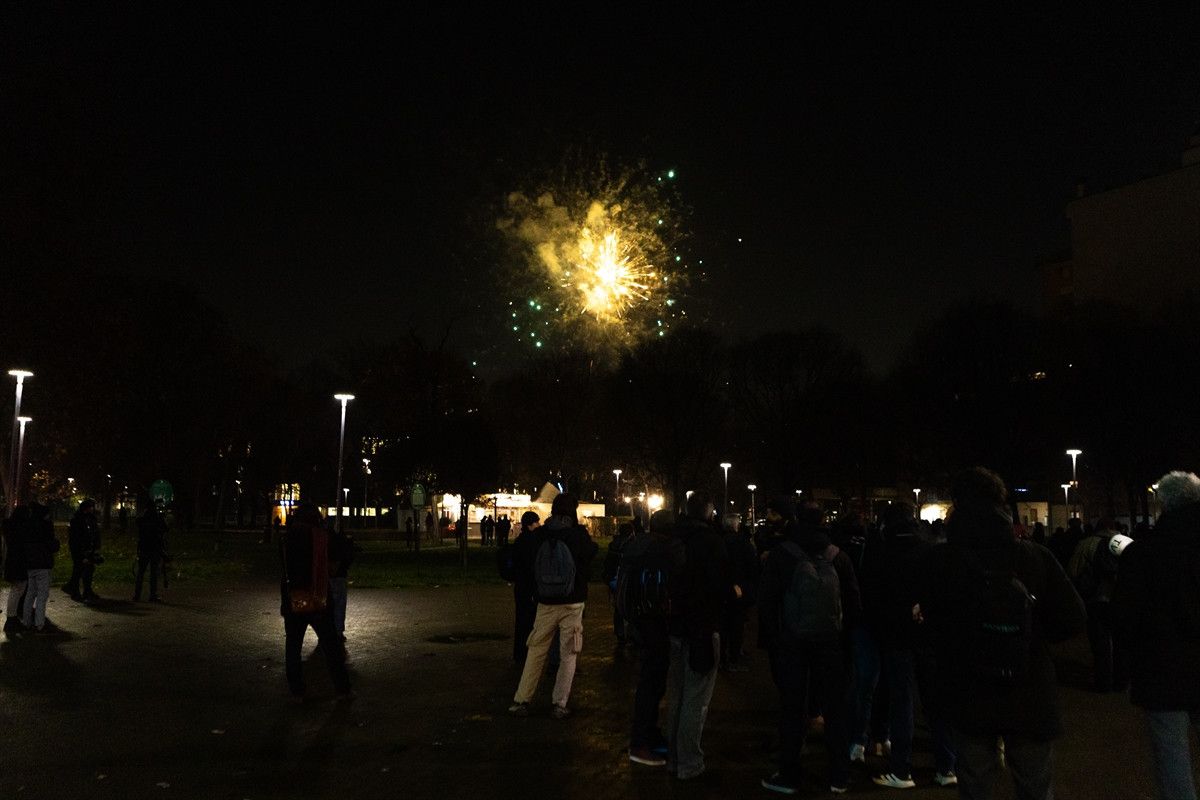 Protestocular sık sık havai fişek atıp meşaleler yakarken, “Özgür Gazze”, “Filistin’e özgürlük” şeklinde sloganlar attı.