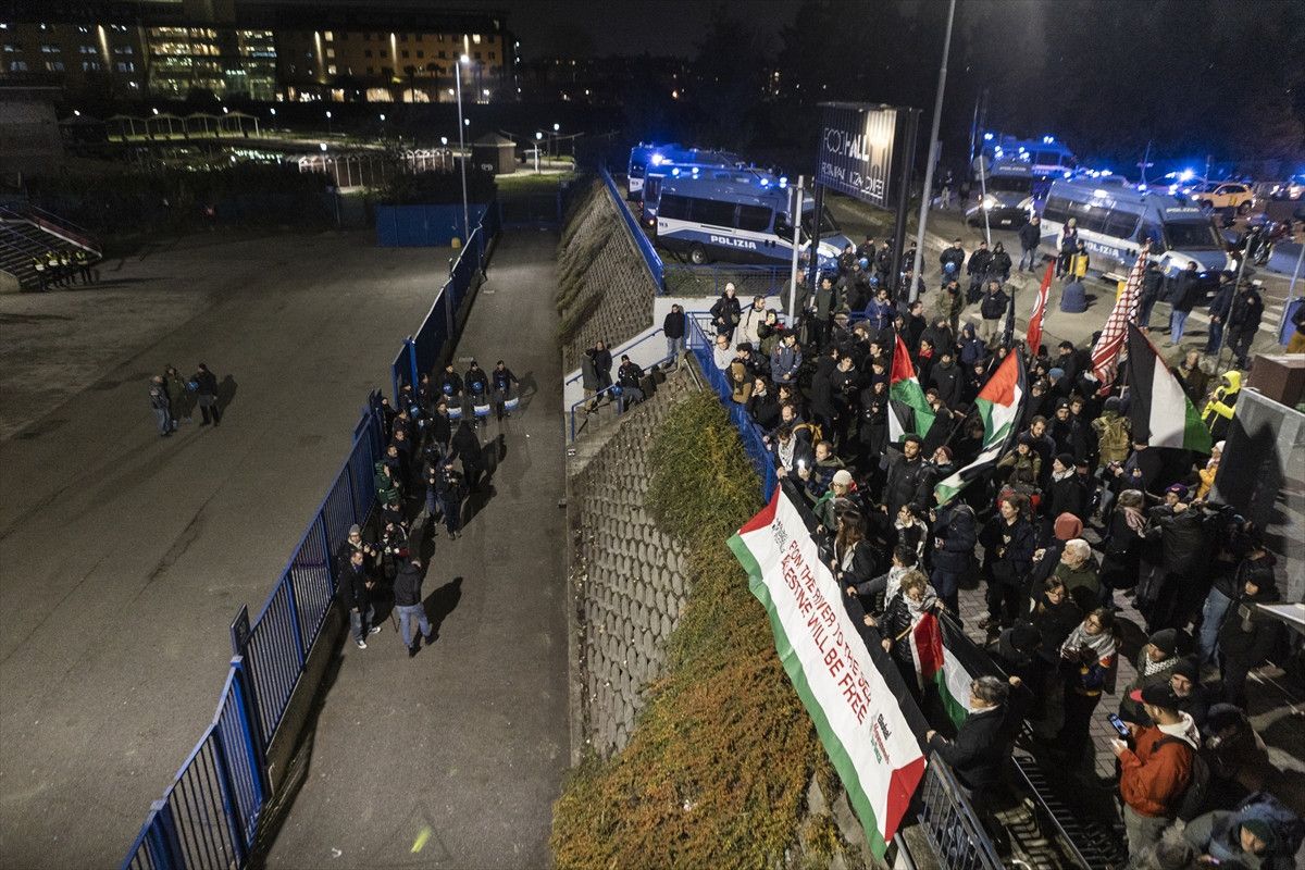 Bologna kentinde bu akşamki maç öncesinde binlerce kişi şehir merkezindeki Maggiore Meydanı’nda bir araya gelerek, İsrail takımlarının uluslararası spor müsabakalarında mücadele etmesine, dolayısıyla Maccabi Tel Aviv takımının bu akşam maça çıkmasına tepki gösterdi.