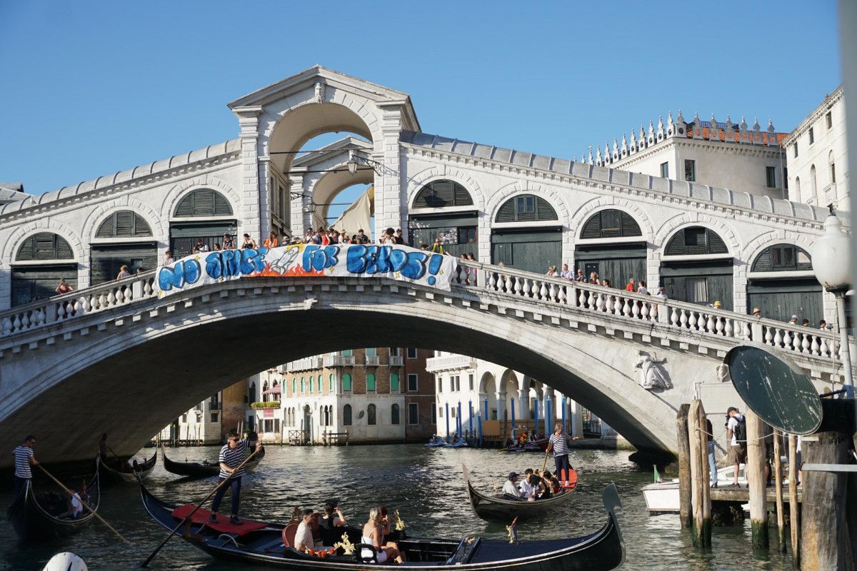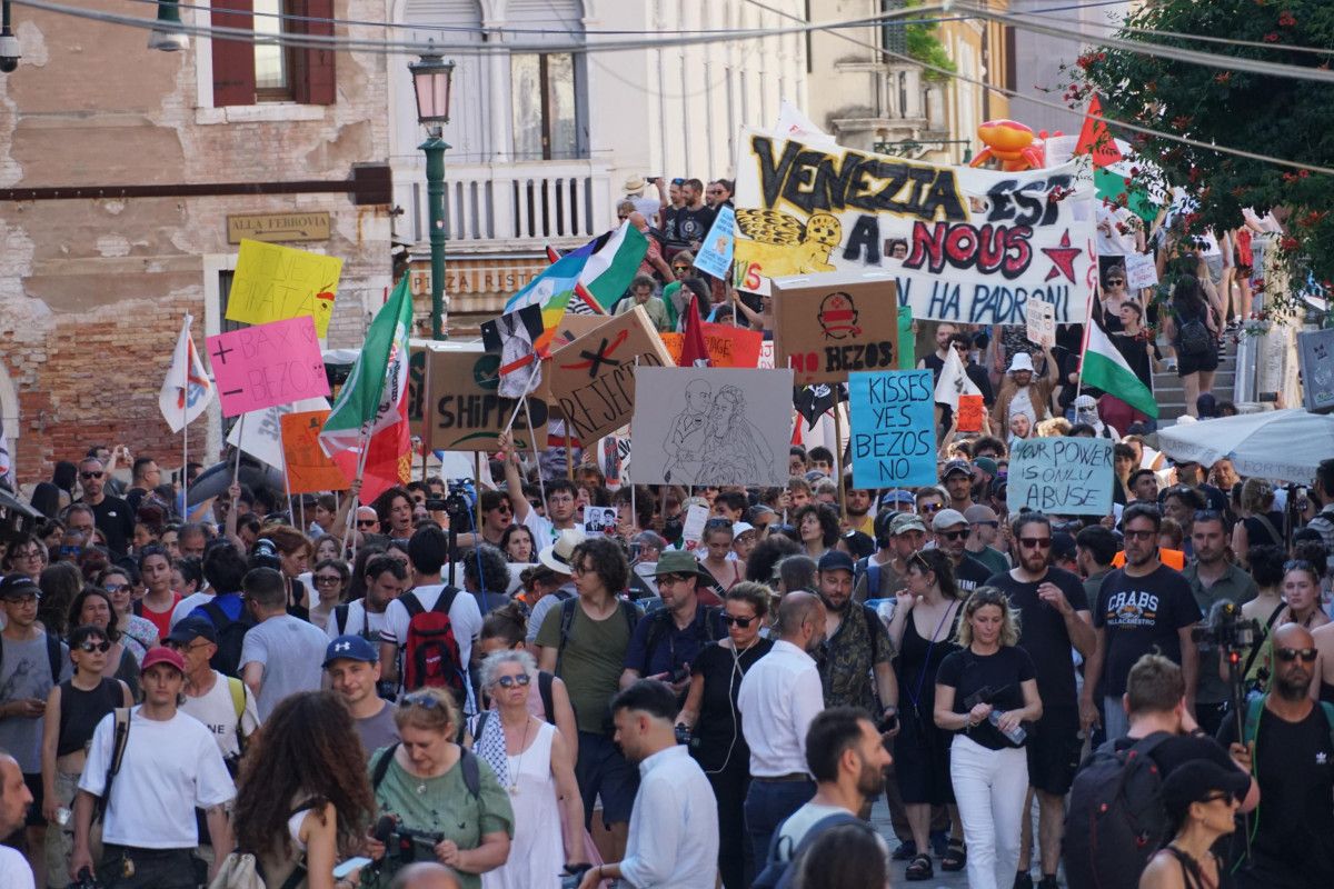 Bezos çiftinin düğün töreninin son gününde yüzlerce protestocu, “düğün şatafatına hayır” demek için Venedik’in merkez sokaklarında yürüyüş düzenledi.