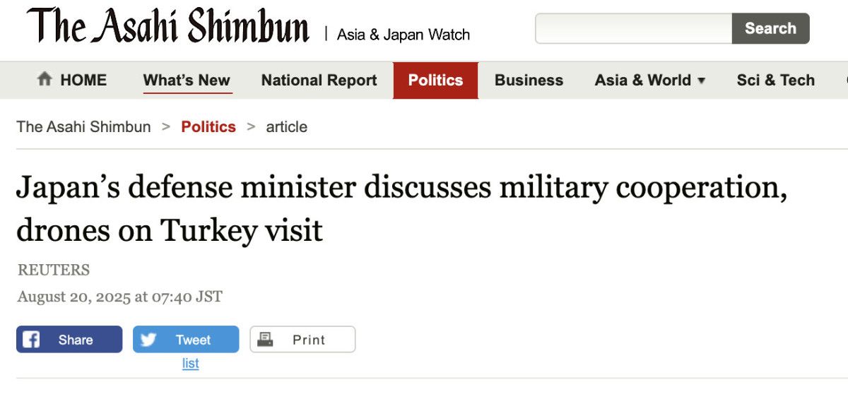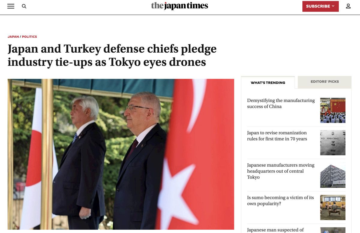 Asahi Shimbun gazetesinde yer alan haberde ise, Nakatani’nin mevkidaşı Güler ile yaptığı görüşmelerde Türkiye’den muhtemel İHA tedariğini masaya yatırdığı belirtilerek, “Diplomatik kaynaklara göre; iki ülkenin savunma bakanları, savunma ekipmanları ve teknoloji alanında işbirliğini genişletme yollarını ve bölgesel gelişmeleri ele aldı.