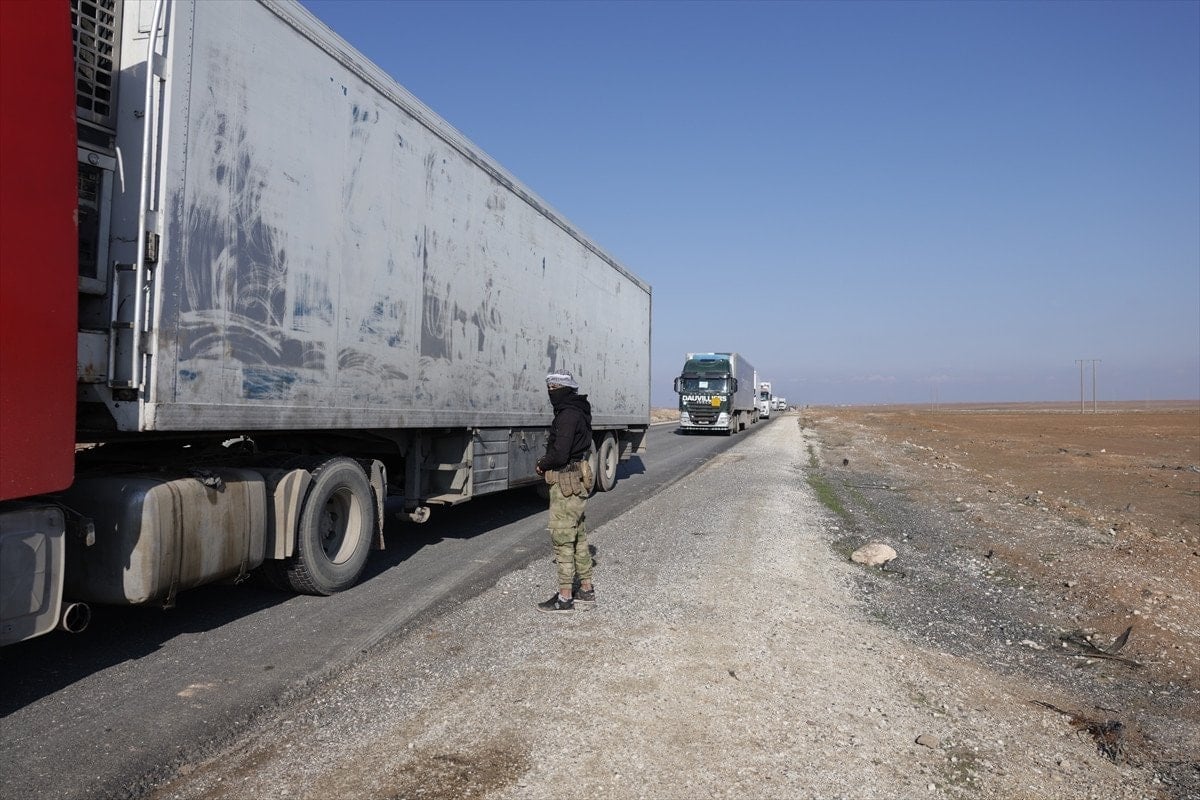 Aynı şekilde, başkent Şam’dan yola çıkan 10 gıda yüklü yardım tırı BM eşliğinde YPG’nin işgalindeki Haseke, Kamışlı hattına doğru ilerledi.