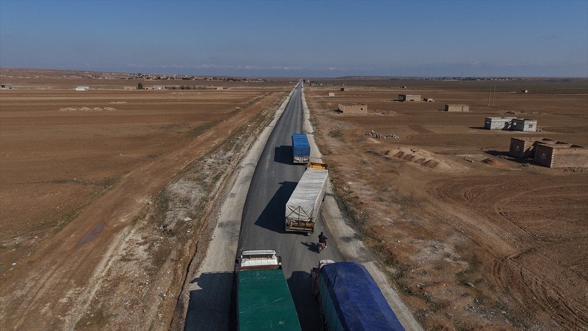 BM araçlarının eşlik ettiği 23 kamyonluk gıda malzemesini Kamışlı’ya ulaştıran yardım tırları, terör örgütü YPG’nin işgalindeki bölgelerden geçerek Suriye hükümetinin kontrolündeki bölgelere doğru hareket etti.