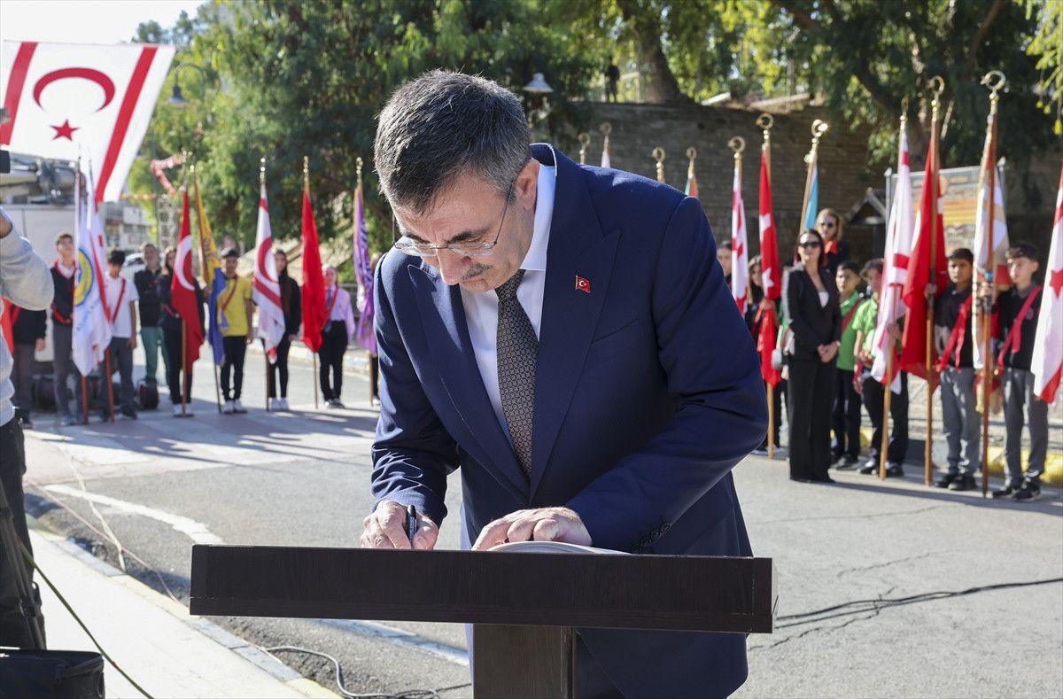 KKTC Cumhurbaşkanı Tufan Erhürman, Cumhurbaşkanı Yardımcısı Cevdet Yılmaz ve Milli Savunma Bakanlığını (MSB) temsilen Muharip Hava Kuvvetleri Komutanı Orgeneral Rafet Dalkıran anıt özel defterini imzaladı.