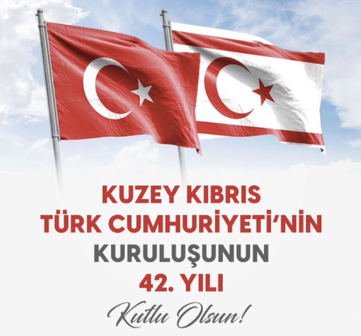 Kıbrıslı Türklerin 1963’ten bu yana verdiği egemenlik ve varoluş mücadelesinin en kıymetli tezahürü, milli davamızın en önemli simgesi Kuzey Kıbrıs Türk Cumhuriyeti’nin kuruluşunun 42. yıl dönümü kutlu olsun. Anavatan ve garantör Türkiye, her daim Kıbrıs Türk halkının yanında olmaya devam edecek, Ada’daki gerçekler temelinde Kıbrıs meselesinin adil, kalıcı ve sürdürülebilir çözümüne yönelik yapıcı ve kararlı çabalarını sürdürecektir.