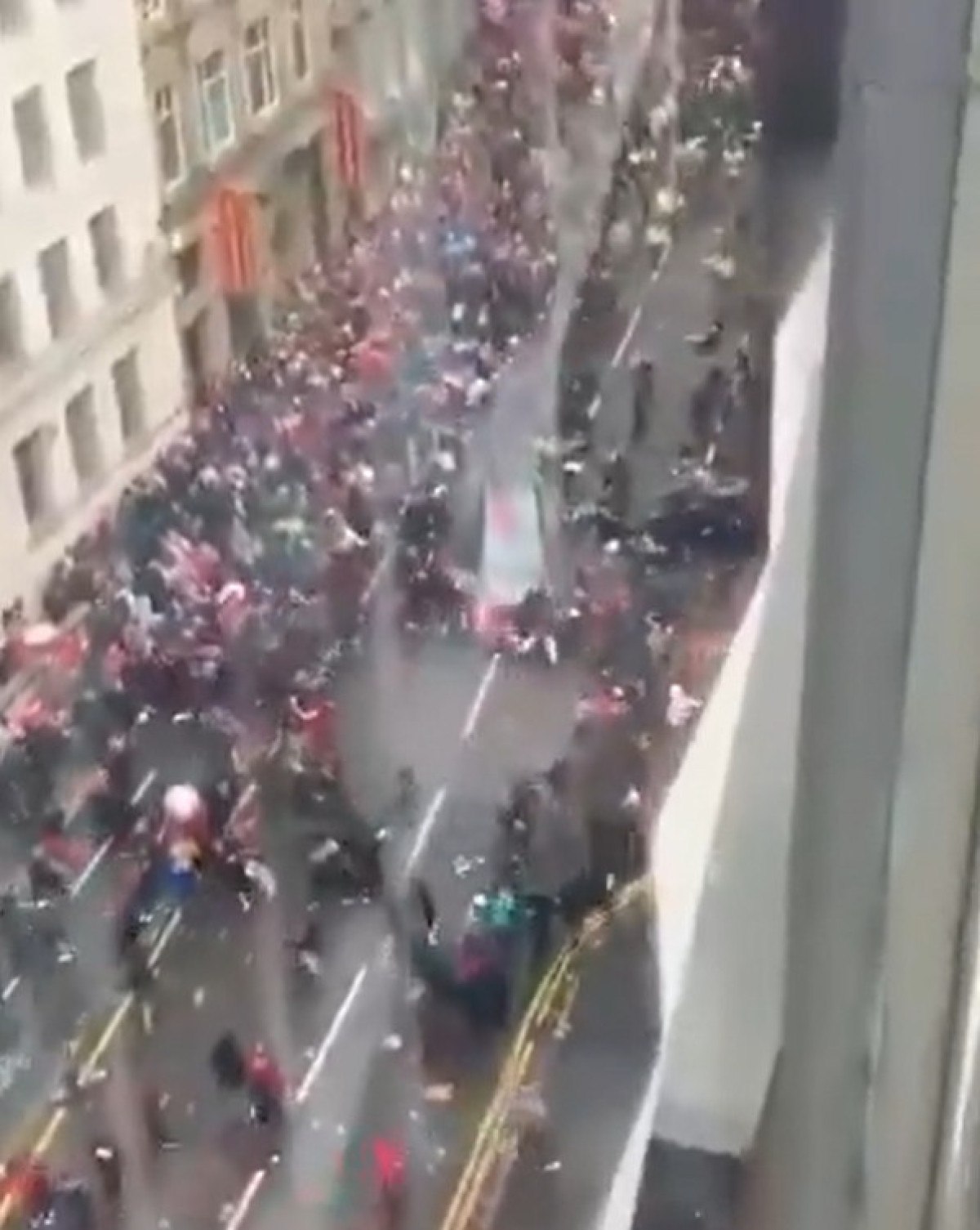 Liverpool taraftarının şampiyonluk kutlaması sırasında bir şahıs, aracıyla kalabalığın içine daldı.