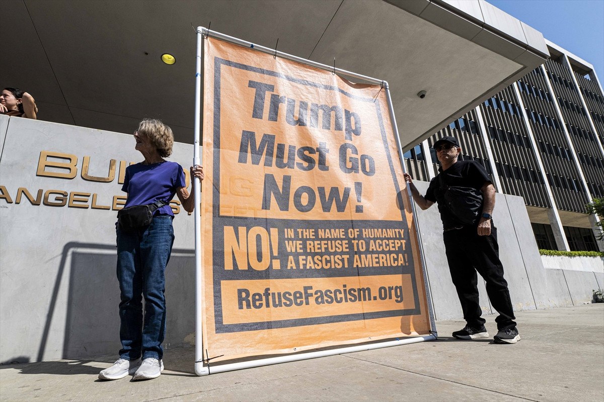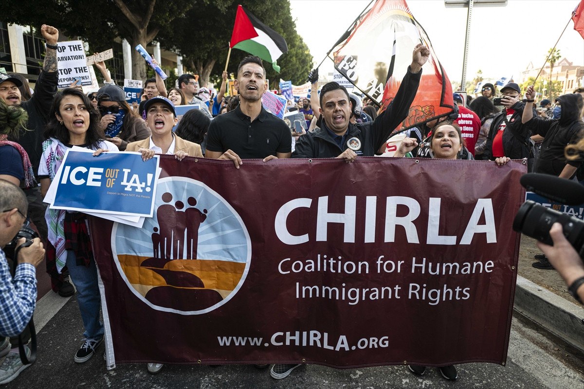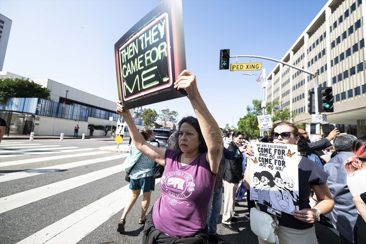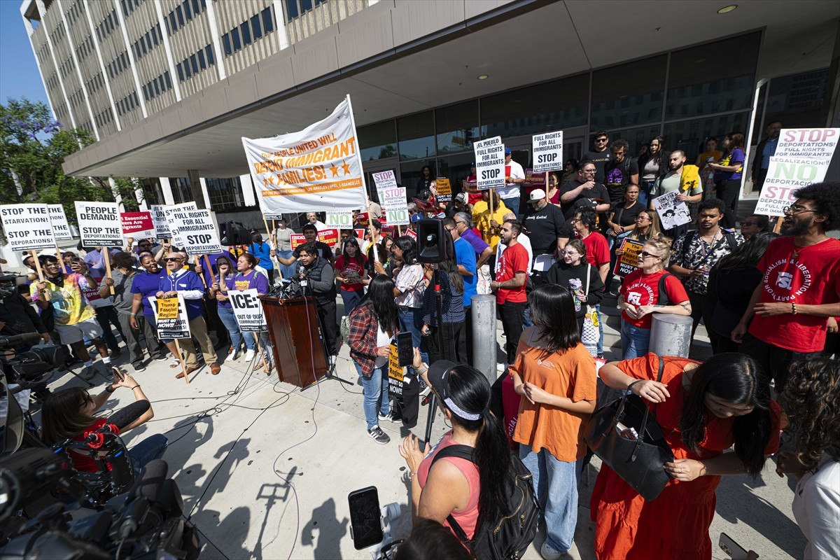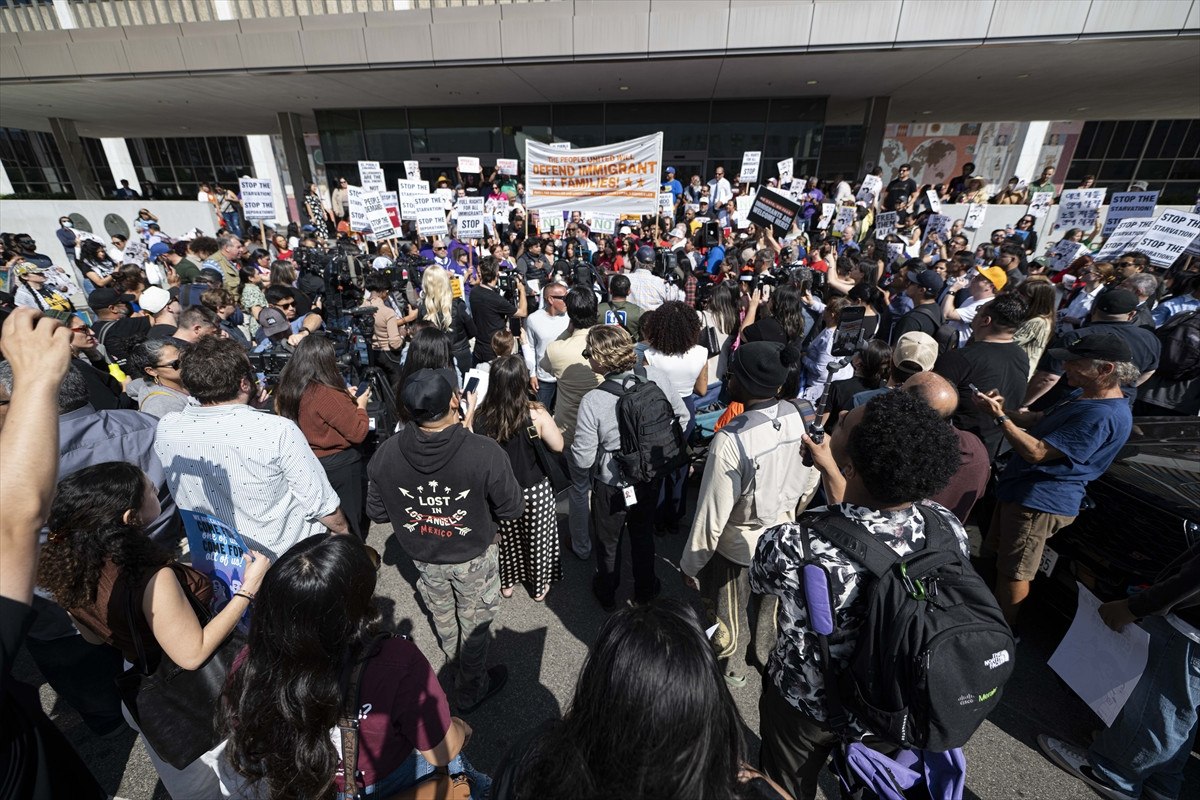 ABD’nin Kaliforniya eyaletine bağlı Los Angeles kentinde, Federal Bina önünde toplanan göstericiler, FBI ve Göçmenlik ve Gümrük Muhafaza (ICE) ekiplerinin şehir merkezindeki yasa dışı göçmenlere yönelik operasyonlarını protesto etti.