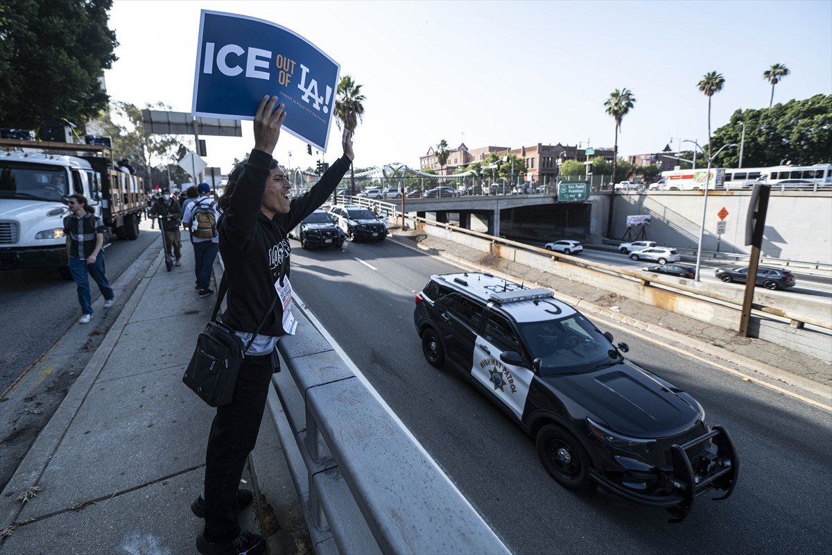 Down Town Los Angeles (DTLA) bölgesinde gerçekleştirilen gözaltılara tepki gösteren kalabalık, göçmen haklarını savunan sloganlar atarak güvenlik güçlerinin uygulamalarını eleştirdi.