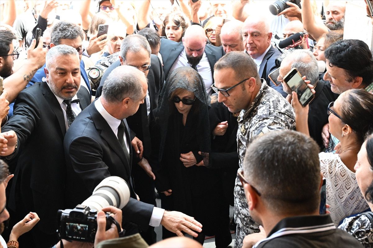 Kızı Rima ve Lübnan Cumhurbaşkanı Joseph Avn’ın eşi Nimet Avn eşliğinde oğlu Ziyad Rahbani’ye son vedasını yapan Feyruz, kiliseden ayrılarak taziye salonunda taziyeleri kabul etti.