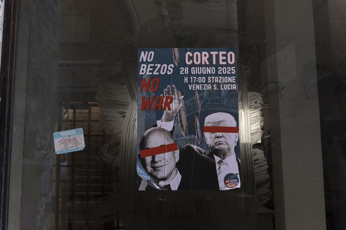 23 Haziran’da Greenpeace Italia ve İngiliz “Everyone Hates Elon (Herkes Elon’dan nefret eder)” isimli grup, yine Aziz Mark (San Marco) Meydanı’nda üzerinde Bezos’un bir fotoğrafı ve İngilizce “Düğününüz için Venedik’i kiralayabiliyorsanız, daha fazla vergi de ödeyebilirsiniz” yazılı 400 metrekarelik bir pankart açmıştı. Polis bunu toplayarak kaldırmıştı.
