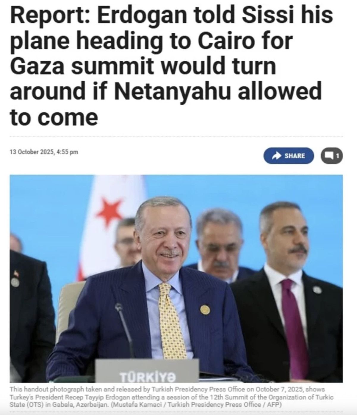 Arap ülkelerinin desteğiyle Türkiye, Netanyahu’nun ziyaretini engellemek için baskı yaptığını iddia ediyor. Bir Türk diplomatik kaynak AFP’ye verdiği demeçte, “Cumhurbaşkanı Recep Tayyip Erdoğan’ın girişimi ve Türkiye’nin diplomatik çabaları ve diğer liderlerin desteği sayesinde Netanyahu, Mısır’daki toplantıya katılmayacak.” dedi.