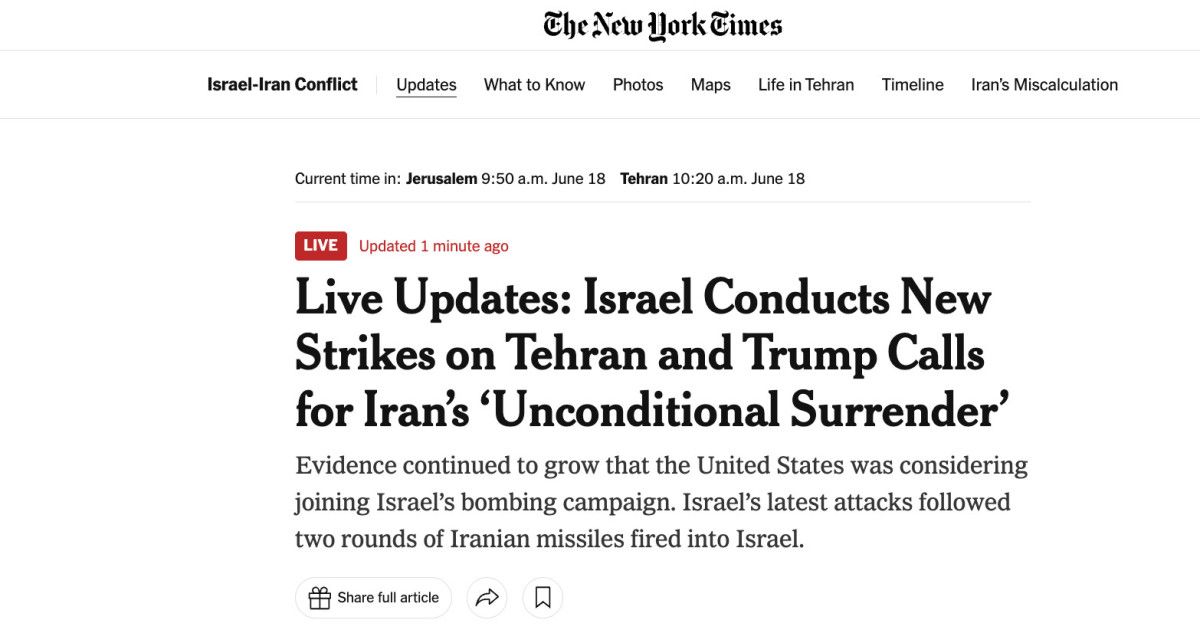 ABD Başkanı Donald Trump, İsrail’in saldırılarını “başarılı” bulduğunu söyleyerek İran’a “koşulsuz teslimiyet” çağrısında bulundu.