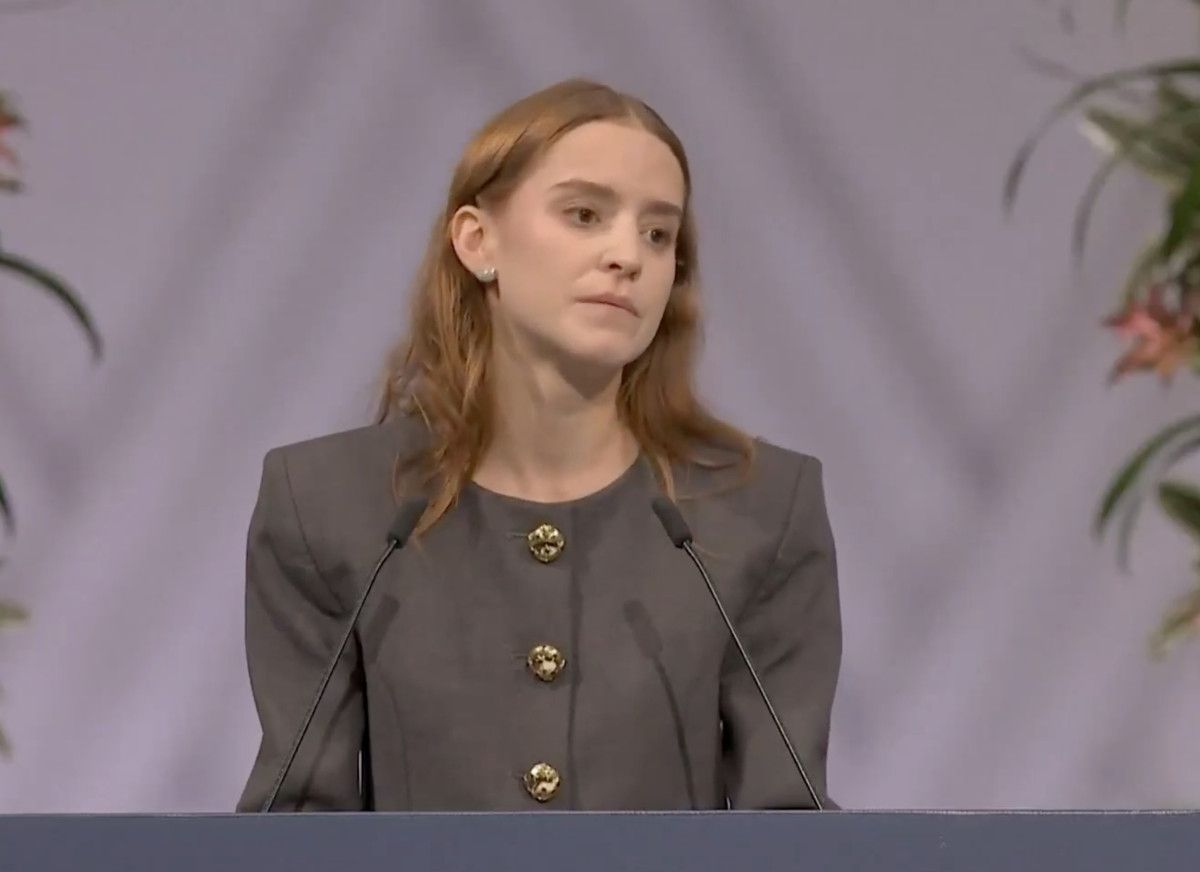 Norveç Nobel Komitesi Başkanı Jorgen Watne Frydnes, ödül töreninde yaptığı konuşmada, “Her ne kadar bugünkü programa yetişemeyecek olsa da güvende olduğunu ve Oslo’da bizimle birlikte olacağını teyit etmekten mutluluk duyuyoruz” dedi.