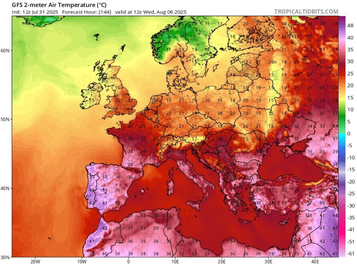 İber Yarımadası’nın diğer ülkesi İspanya da aynı sıcak hava dalgasından etkileniyor. İspanya Meteoroloji Enstitüsü, 3-7 Ağustos tarihleri arasında Endülüs, Kastilya ve Leon, Kastilya-La Mancha, Extremadura, Galiçya ve Madrid bölgelerinde sıcaklıkların 40°C’yi aşmasının beklendiğini açıkladı.