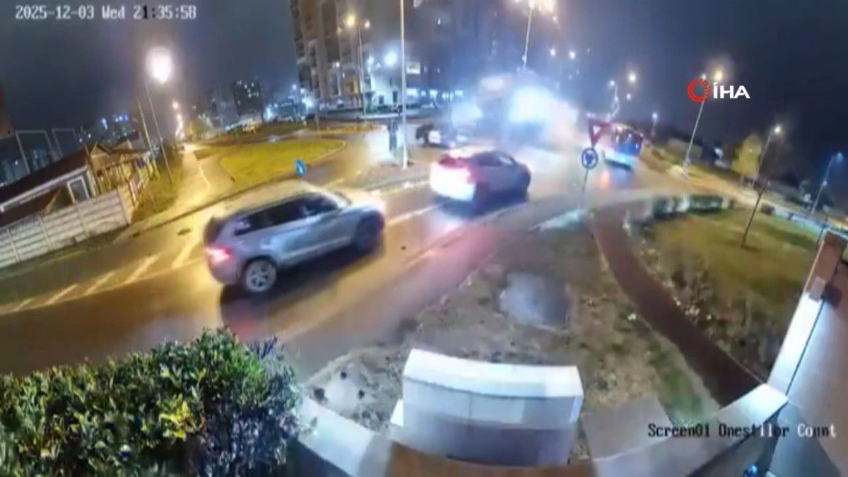 Oradea kentinde hızla ilerleyen bir araç, kavşağa çarparak havalandı.
