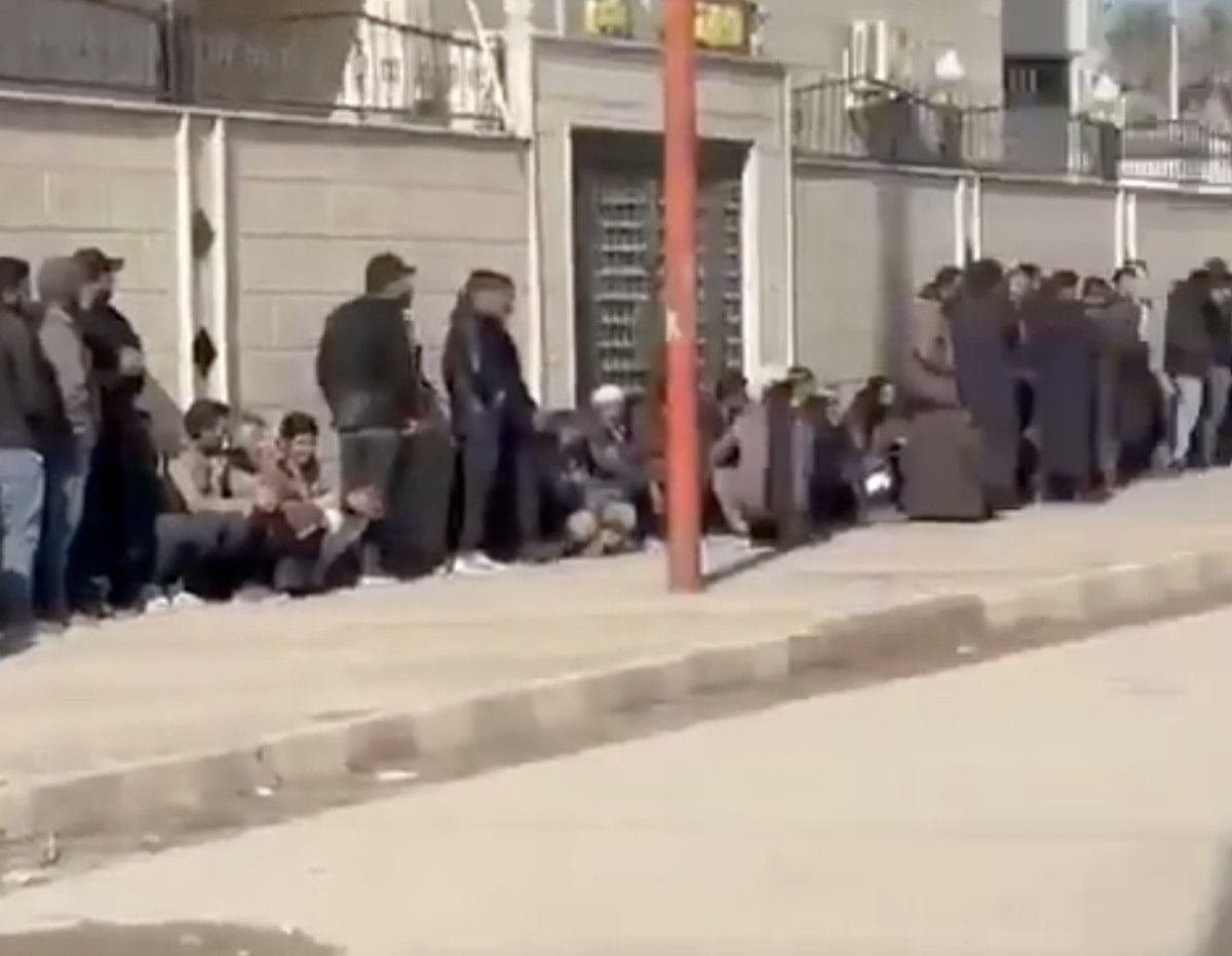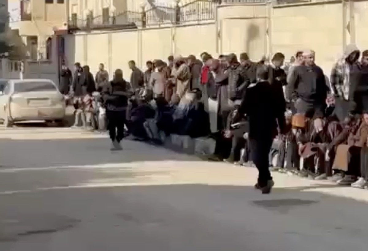 Bölgede kaydedilen görüntülerde eski terör örgütü üyelerinin kurulan merkezin önünde uzun bir kuyruk oluşturduğu görüldü.