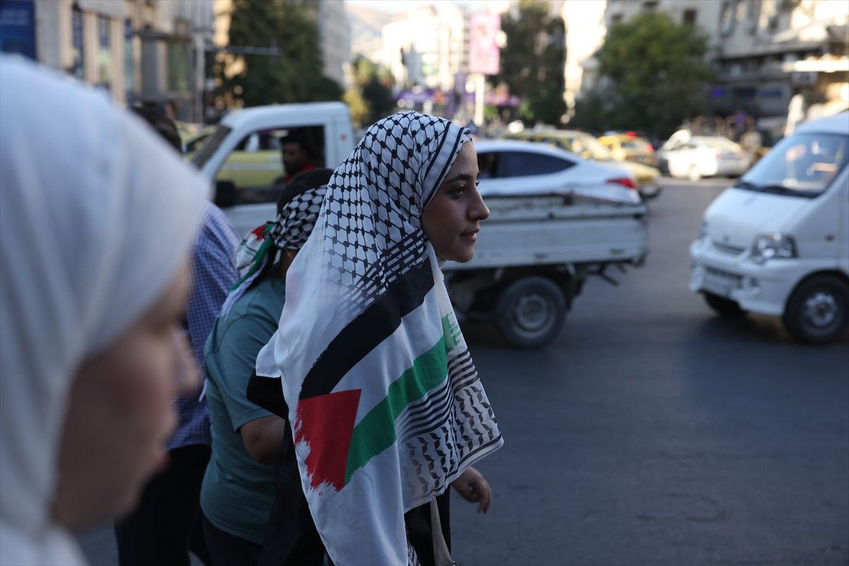Suriye’nin başkenti Şam’da, Küresel Sumud Filosu’na destek amacıyla gösteri düzenlendi.
