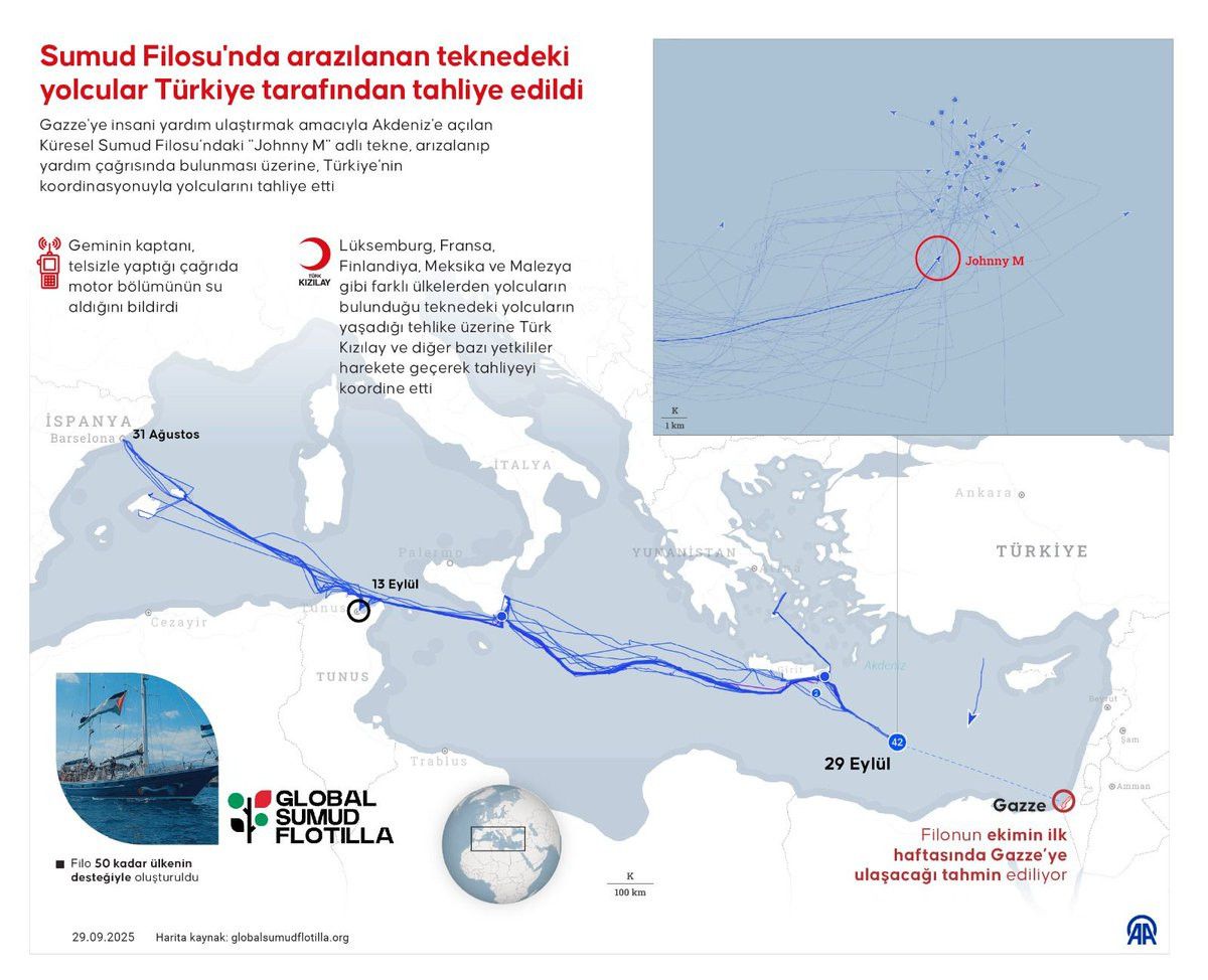 Küresel Sumud Filosu’nun, ABD merkezli Instagram sosyal medya platformundan yapılan açıklamada, tahliye sürecinde Türk hükümetinin hızlı koordinasyonu ve Türk Kızılay’ın sahadaki katkıları sayesinde operasyonun sorunsuz yürütüldüğü vurgulandı.