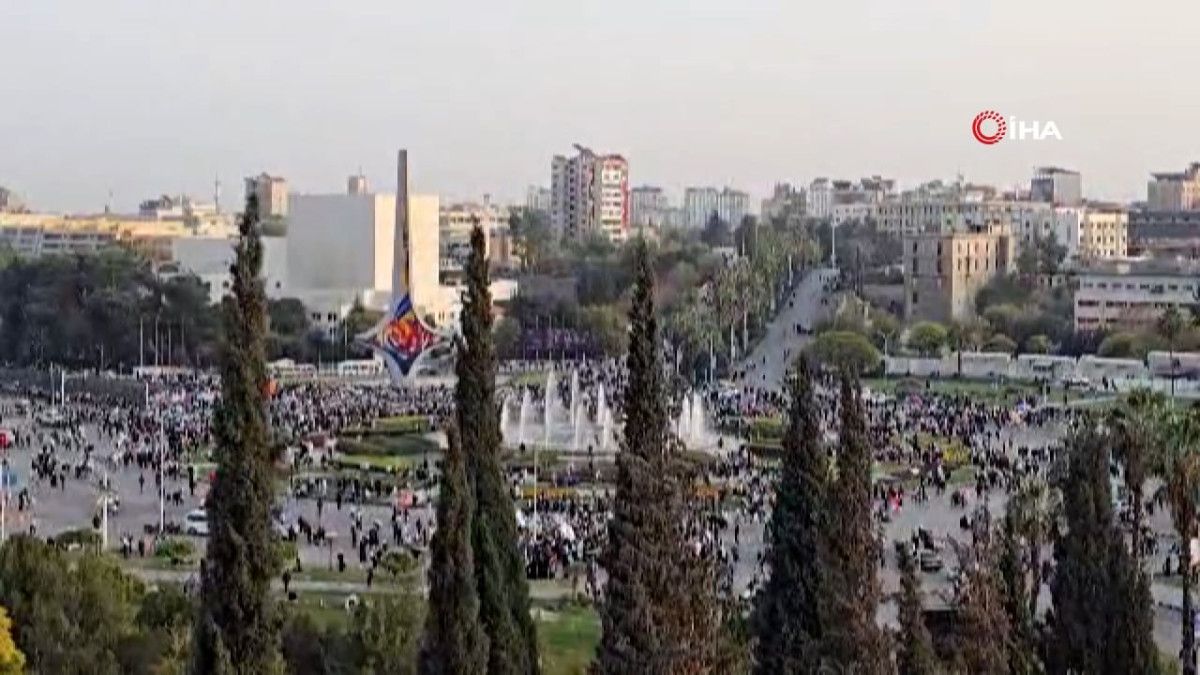 Günün erken saatlerinden itibaren başta başkent Şam olmak üzere Humus, Lazkiye ve diğer birçok şehirde meydanlara akın etmeye başlayan kalabalıklar, bayraklar eşliğinde Suriye’nin birliğini ve kurtuluşunun yıl dönümünü kutlayan sloganlar attı.