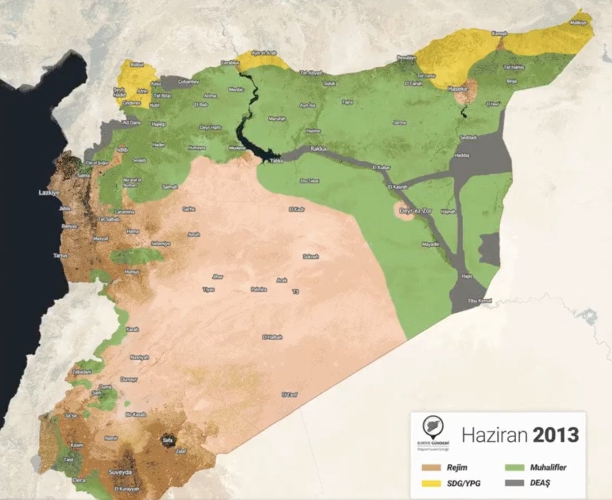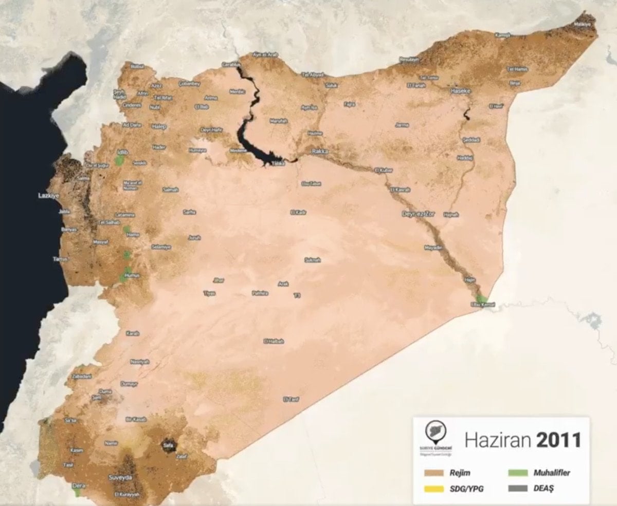 Süreç bu şekilde devam ederken son 15 yılda Suriye haritasında yaşanan değişim ise dikkat çekiyor.