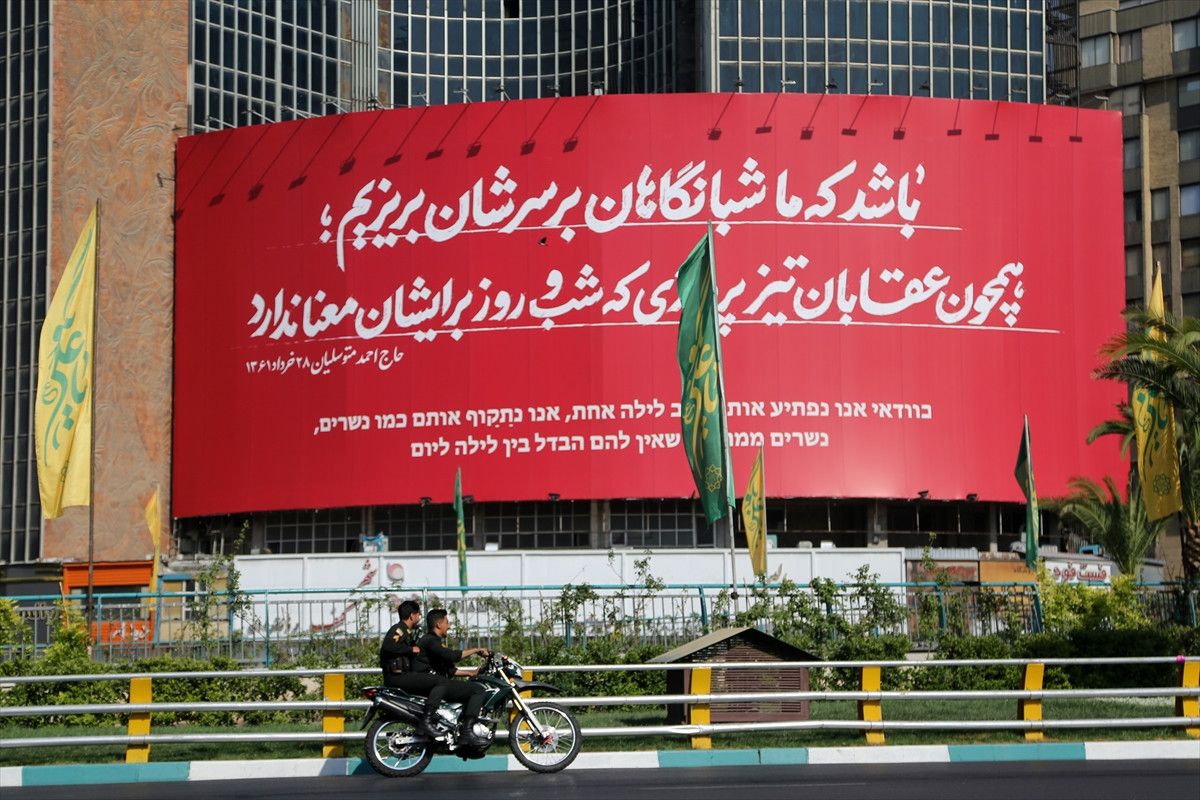 Filistin Inkılap ve Veliasr Meydanları’nda asılan Farsça ve İbranice afişlerde,intikamçağrısı bulunan mesajlar yer aldı.