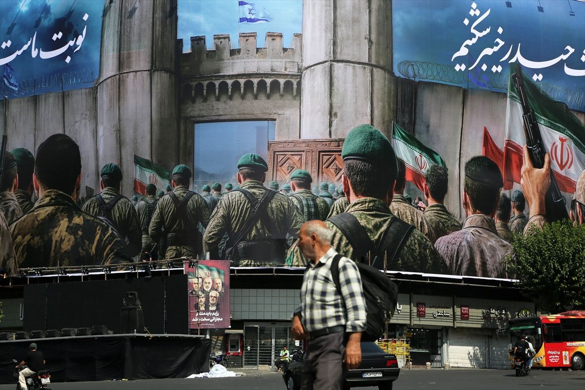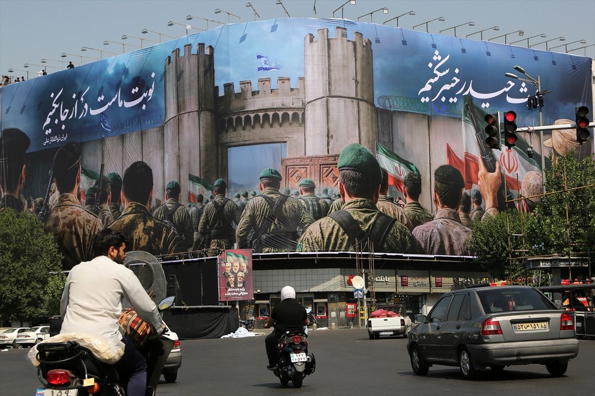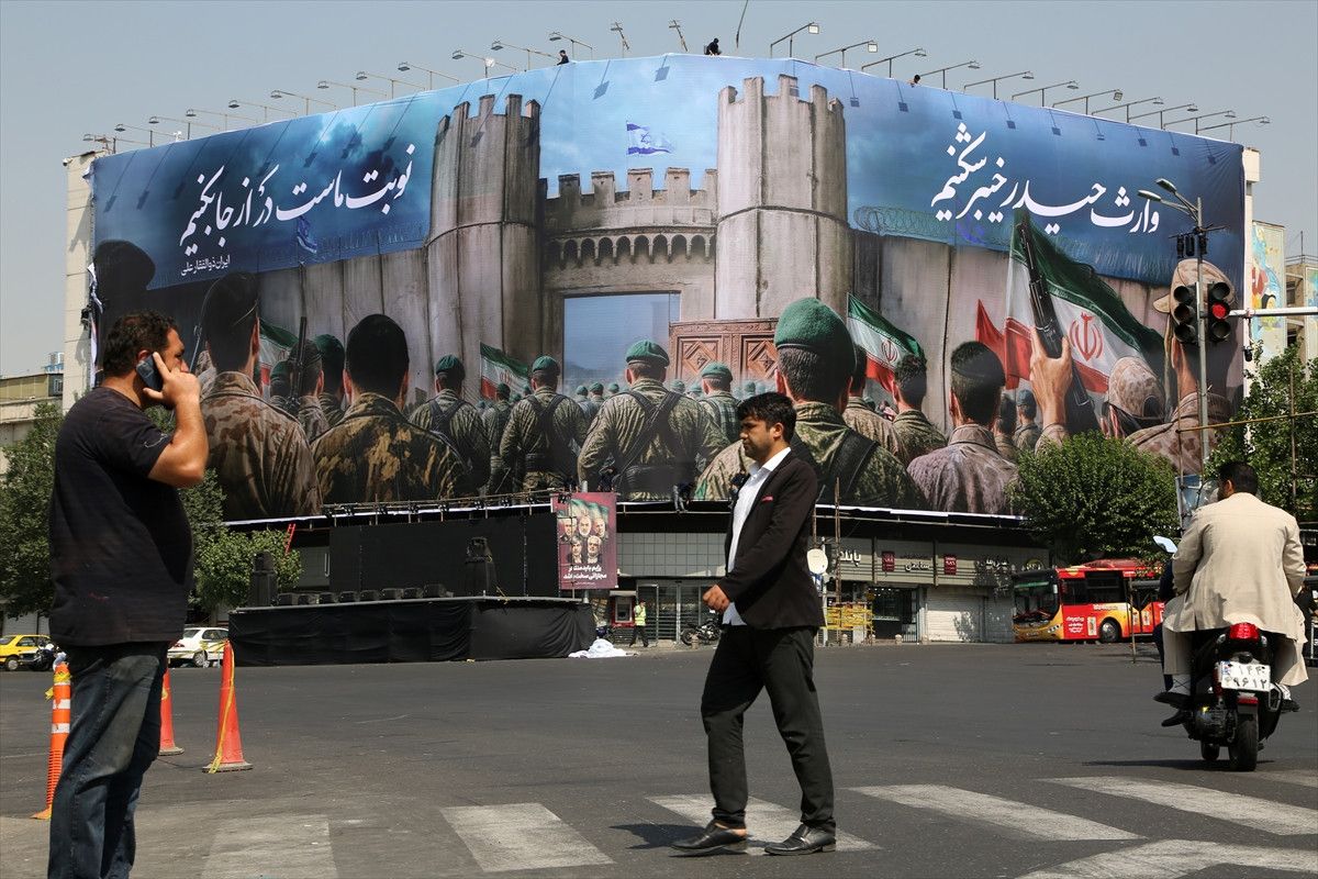 Hükümet askerleri ve birçok sivil grup, başkent Tahran’da, İsrail karşıtı mesajların yer aldığı afişleri caddelere astı.