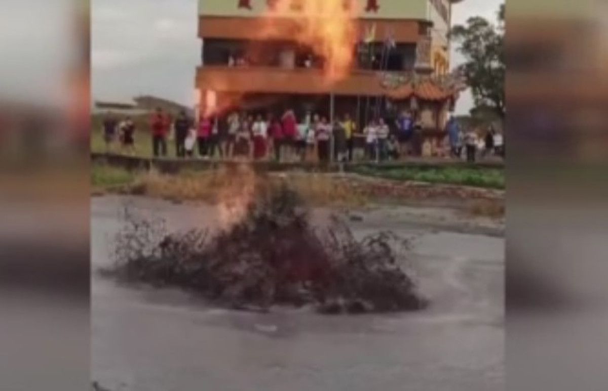 Tayvan’ın Pingtung bölgesindeki Wandan kasabasında bulunan Huangyuan Tapınağı önündeki çamur volkanı, bu yıl ikinci kez patladı.